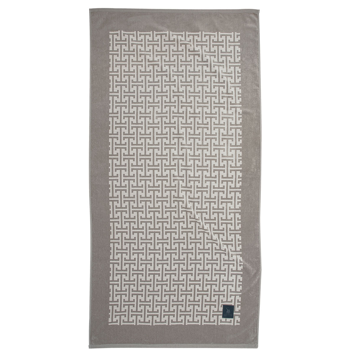 Πετσέτα θαλάσσης βελουτέ σε γκρι χρώμα με γεωμετρικό σχέδιο από τον οίκο Greenwich Polo Club. Είναι κατασκευασμένη από 100% υποαλλεργικό βαμβάκι σε ύφανση jacquard βάρους 400gsm που την καθιστά απορροφητική και ανθεκτική. Μοναδική πετσέτα με ποιότητα και στυλ για τις εμφανίσεις σας στην παραλία. Συνδυάστε την με τα υπόλοιπα είδη της ίδιας σειράς για ένα ολοκληρωμένο αποτέλεσμα.