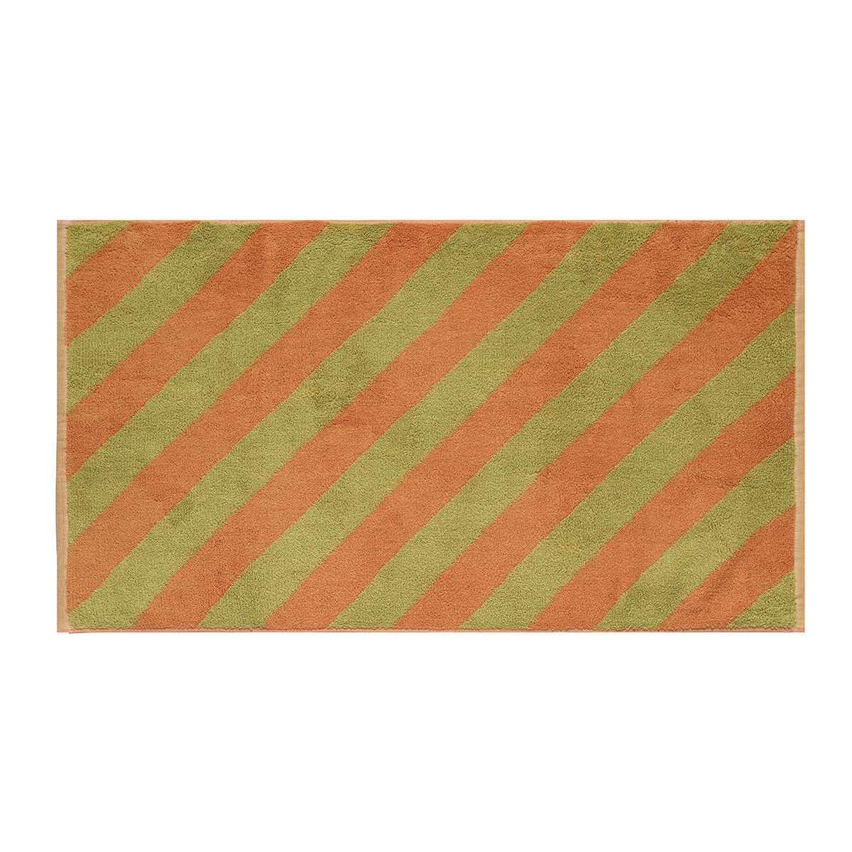 Πετσέτα προσώπου από την εταιρεία Kentia με ριγέ σχέδιο σε πορτοκαλί και πράσινο χρώμα. Είναι κατασκευασμένη από 100% βαμβάκι, βάρους 550gsm, αφράτη και απορροφητική. Συνδυάστε την με τις υπόλοιπες διαστάσεις της ίδιας συλλογής, για ένα αρμονικό αποτέλεσμα.
