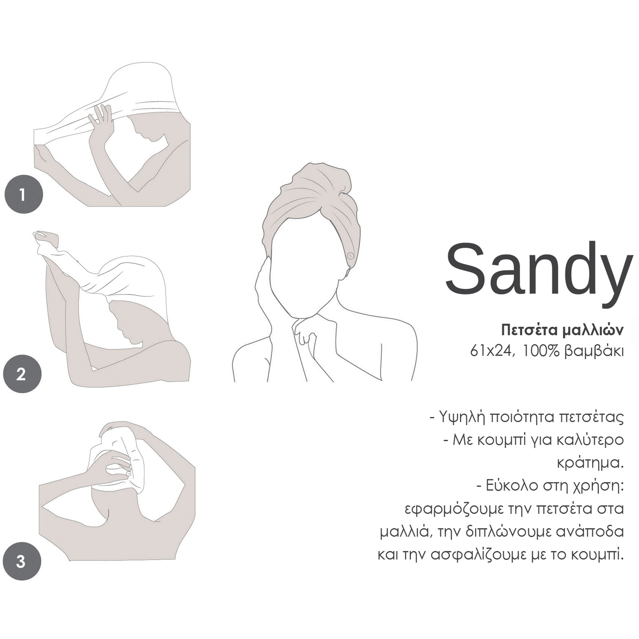 • Τεμάχια: 1 Πετσέτα Μαλλιών/ Τουρμπάνι 24x61
