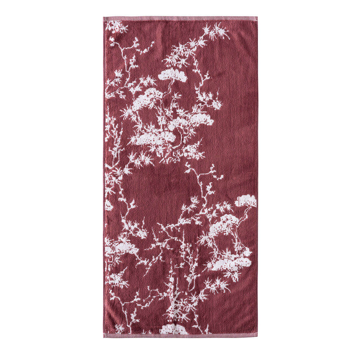 Πετσέτα σώματος από την εταιρεία Kentia σε μπορντώ χρώμα με λευκές λεπτομέρειες και φλοράλ σχέδιο. Η σύνθεσή της είναι από 100% βαμβάκι βάρους 500gsm, που την καθιστά απαλή και απορροφητική.