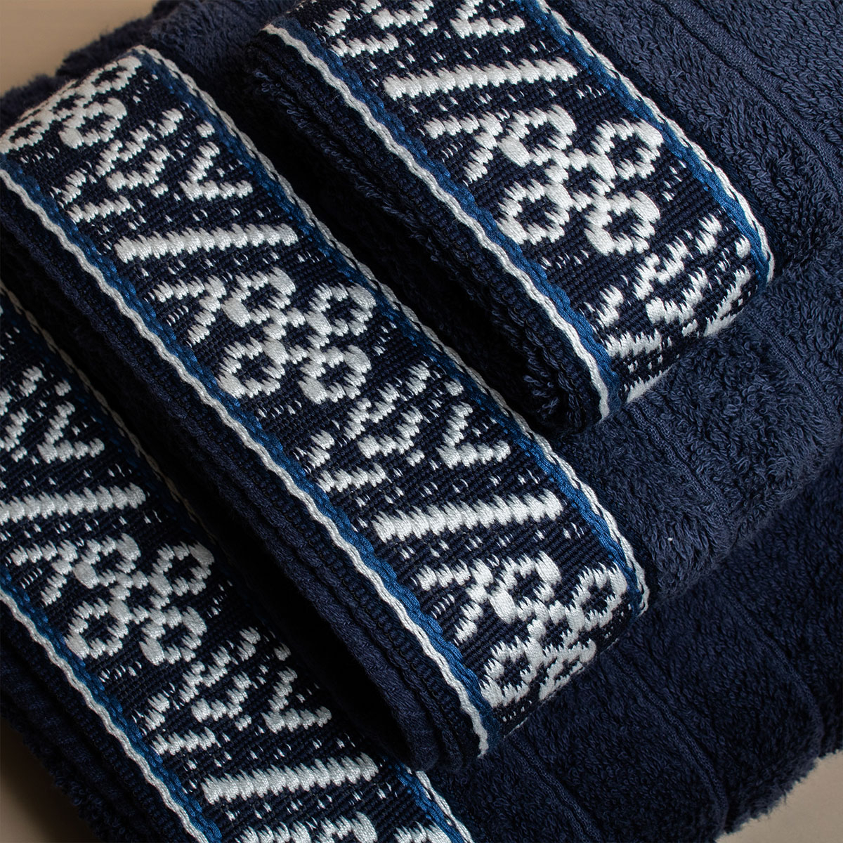 Πετσέτα χεριών από την εταιρεία White Fabric σε μπλε χρώμα. Διαθέτει κεντητή φάσα με έθνικ σχέδιο. Είναι κατασκευασμένη από 100% βαμβάκι, εξαιρετικής ποιότητας, βάρους 600gsm, που την καθιστά απαλή και πολύ απορροφητική. Επίσης, είναι φιλική στο δέρμα. Συνδυάστε τη με τα υπόλοιπα είδη της ίδιας σειράς για ένα ολοκληρωμένο σετ. Είναι χειροποίητη φτιαγμένη με προσοχή στη λεπτομέρεια.