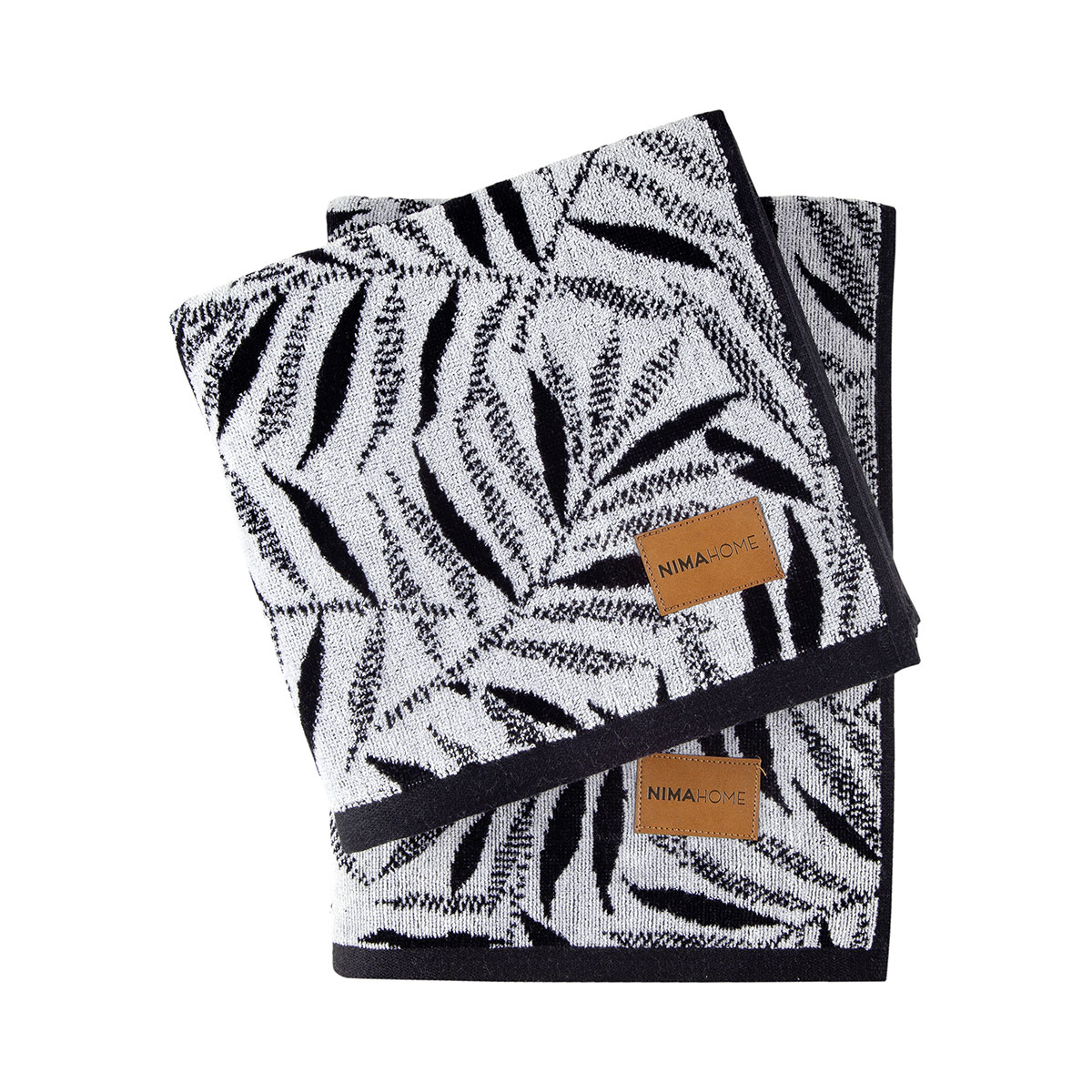 Σετ πετσέτες 2τμχ σε γκρι χρώμα, με μαύρες λεπτομέρειες και μοντέρνο σχέδιο από την εταιρεία Nima. Η σύνθεση τους είναι από 100% βαμβάκι βάρους 480gsm που τις καθιστά απαλές και απορροφητικές. Στολίστε το μπάνιο σας με στυλ και ποιότητα.