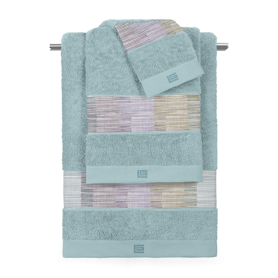Σετ πετσέτες μπάνιου σε βεραμάν χρώμα με υφασμάτινη φάσα και πολύχρωμες λεπτομέρειες από την εταιρεία Guy Laroche. Είναι κατασκευασμένες από 100% βαμβάκι βάρους 500gsm που τις καθιστά εξαιρετικά απαλές και απορροφητικές.