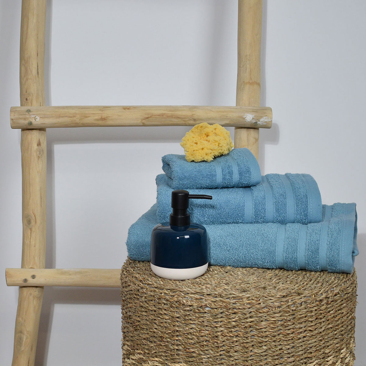 Πετσέτες μπάνιου σε σετ 3 τεμαχίων και πετρόλ χρώμα. Είναι κατασκευασμένες από 100% βαμβάκι βάρους 550gsm που τις κάνει απορροφητικές με γρήγορο στέγνωμα.