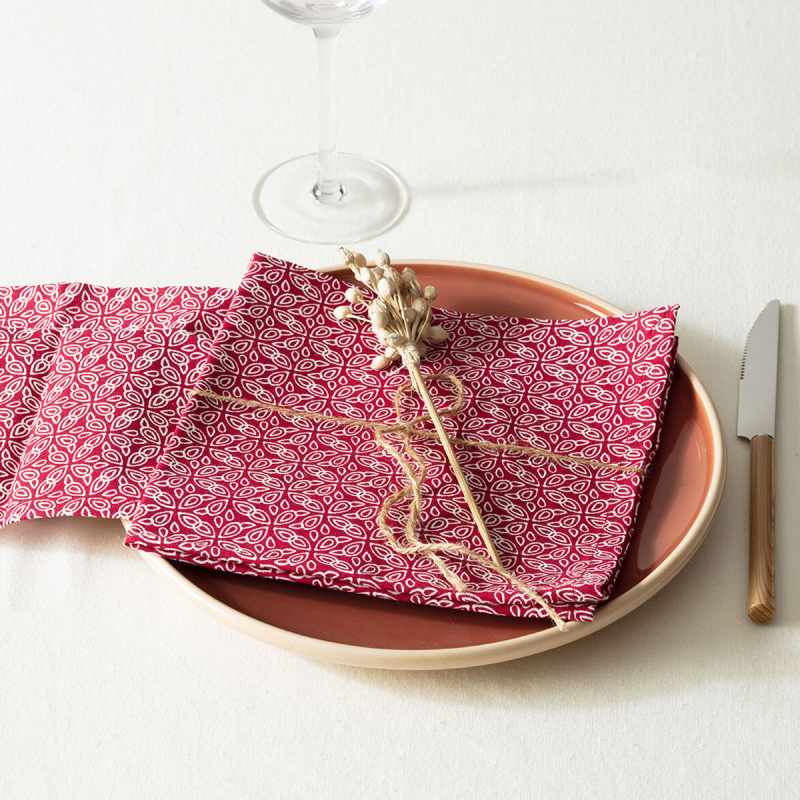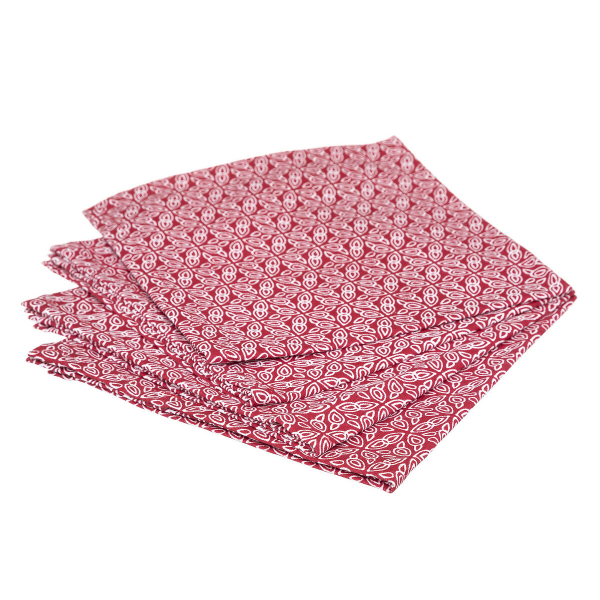 Πετσέτες φαγητού σε κόκκινο χρώμα με λευκές λεπτομέρειες και μοντέρνο σχέδιο, κατασκευασμένες από 100% βαμβάκι. Ιδανικές για να δώσετε χαρακτήρα και αέρα πολυτέλειας στα εορταστικά σας τραπέζια ή στην καθημερινότητά σας.