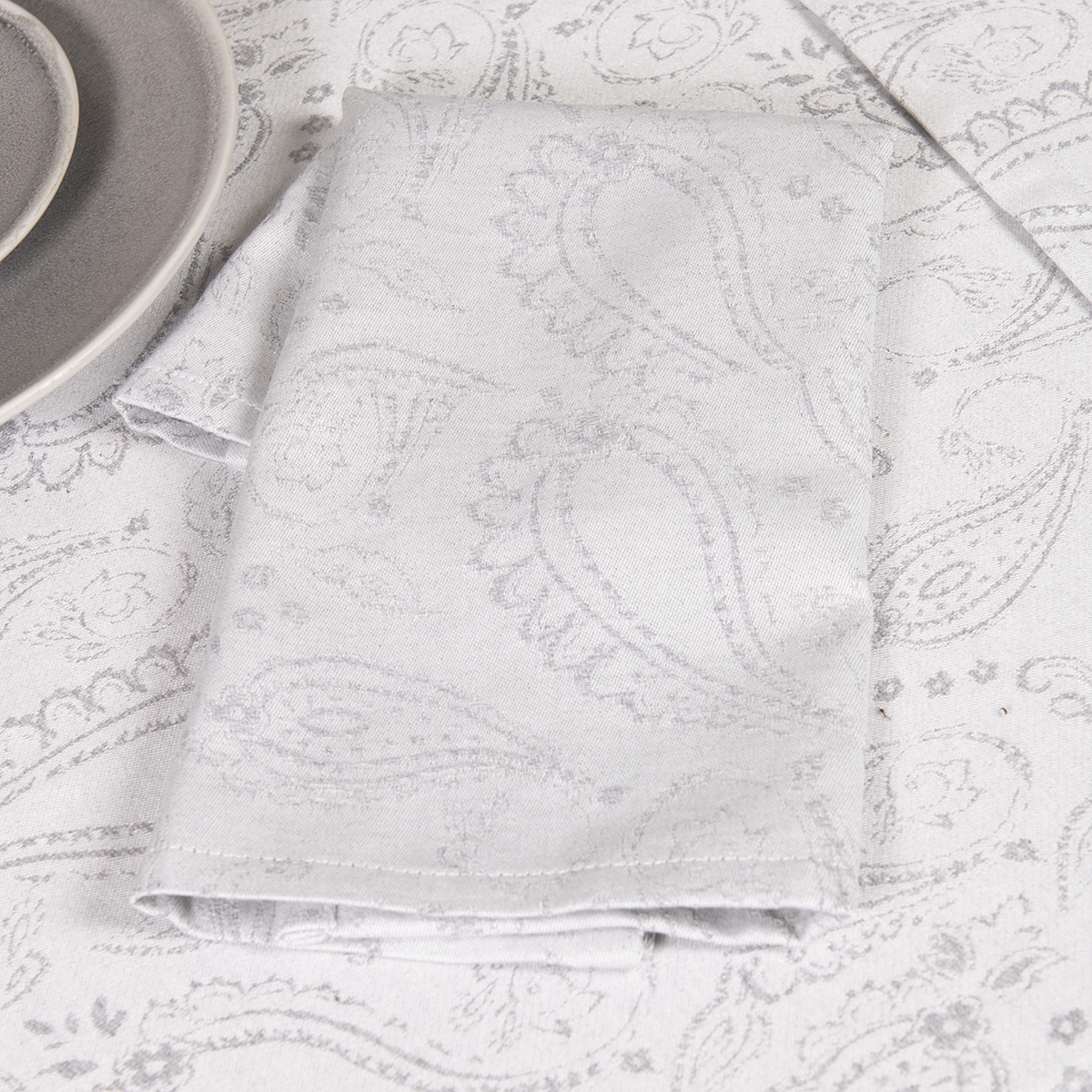 Σετ πετσέτες φαγητού σε γκρι χρώμα και έθνικ σχέδιο από την εταιρεία Nima. Η σύνθεσή τους είναι 40% βαμβάκι 35% polyester 23% βισκόζη 2% λινό. Συνδυάστε τες με τα υπόλοιπα προϊόντα της συλλογής για ένα ολοκληρωμένο αποτέλεσμα.