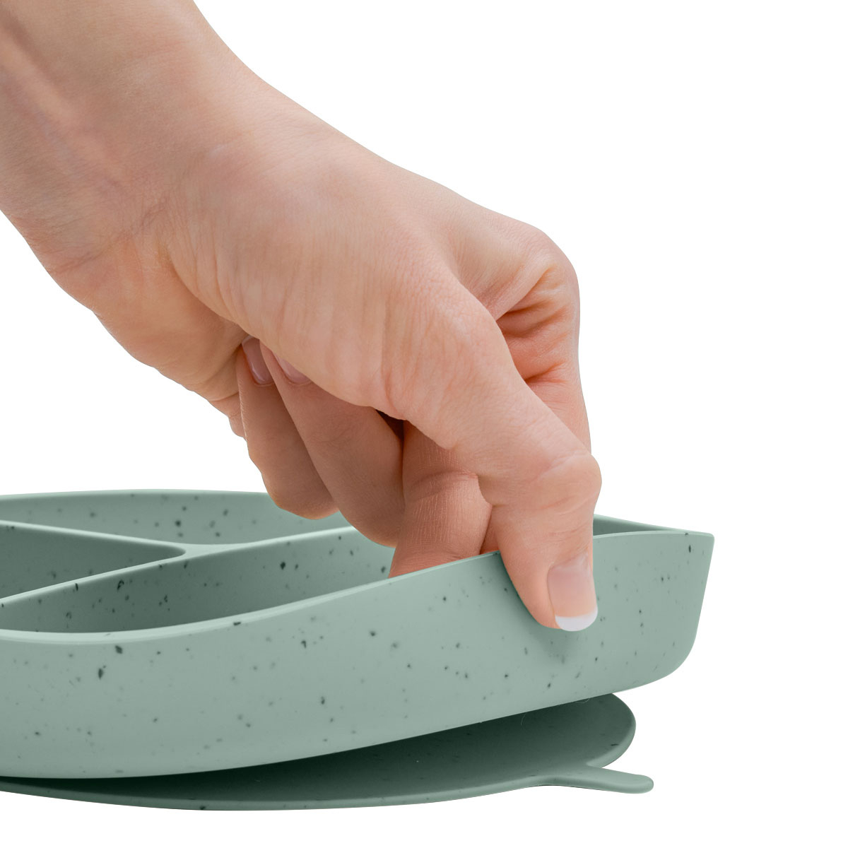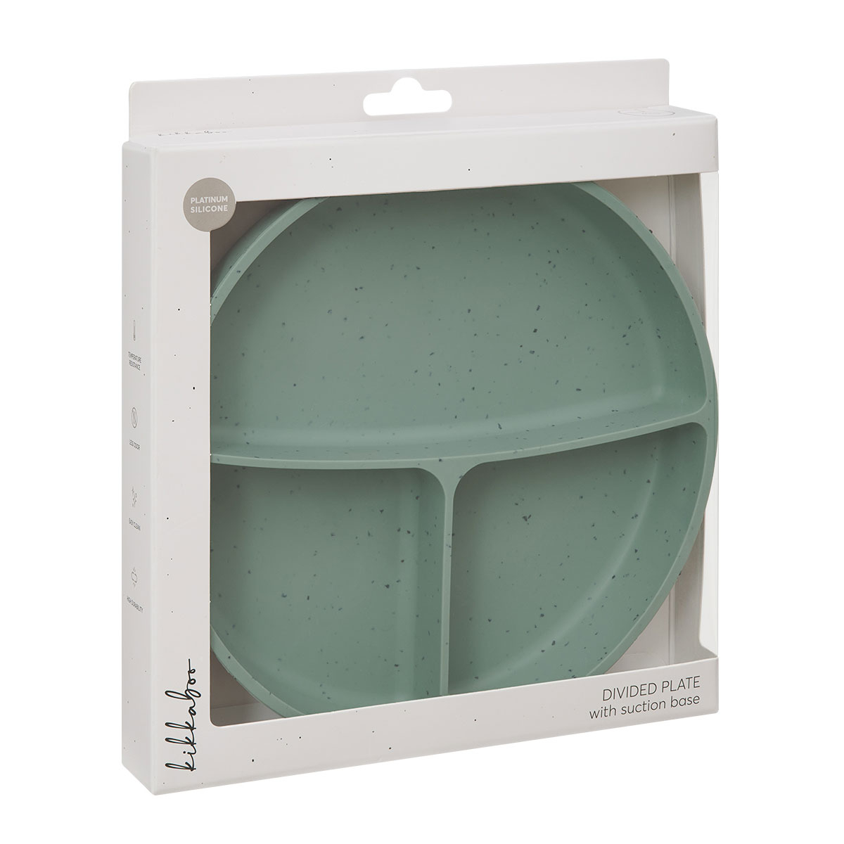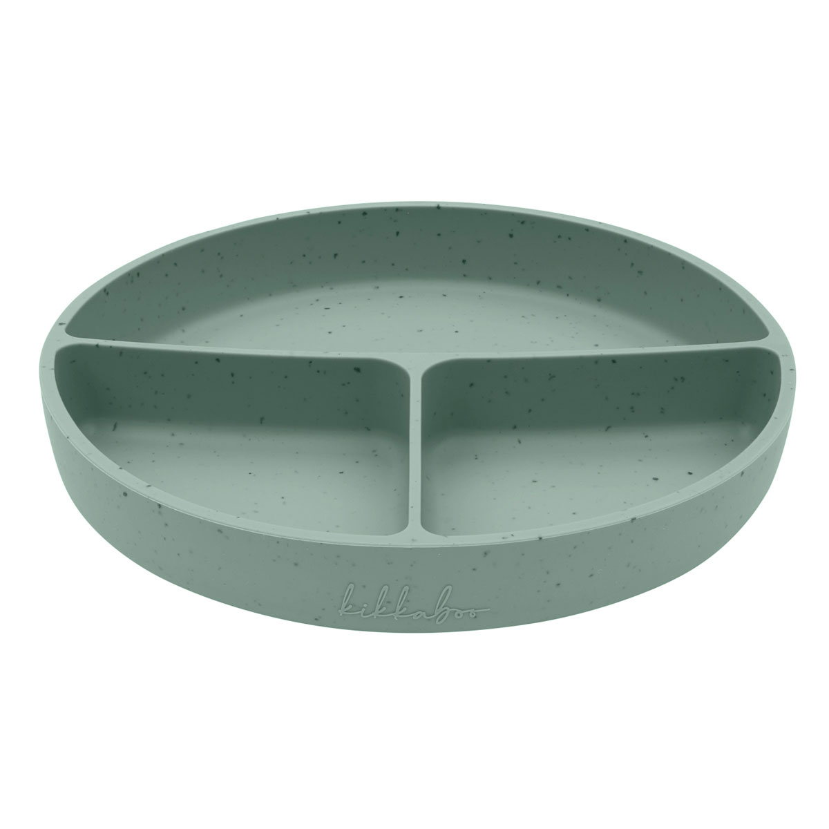 Πιάτο 600ml από την εταιρεία Kikka Boo σε πράσινο χρώμα. Είναι κατασκευασμένο από πλατινένια σιλικόνη απαλλαγμένη από BPA. Η ποιότητά του, του επιτρέπει να αντέχει σε θερμοκρασίες από -40°C έως 230°C. Επίσης, είναι μαλακό, εύκαμπτο και άοσμο υλικό. Ιδανικό για τα πρώτα γεύματα του μωρού κατά την περίοδο απογαλακτισμού. Ενθαρρύνει την αυτοσίτιση. Διαθέτει 3 χωρίσματα για διαχωρισμό μερίδων και διαφορετικών λιχουδιών. Έχει βεντούζα που αποτρέπει ανατροπές και χυσίματα. Κατάλληλο για ηλικίες 6+ μηνών.