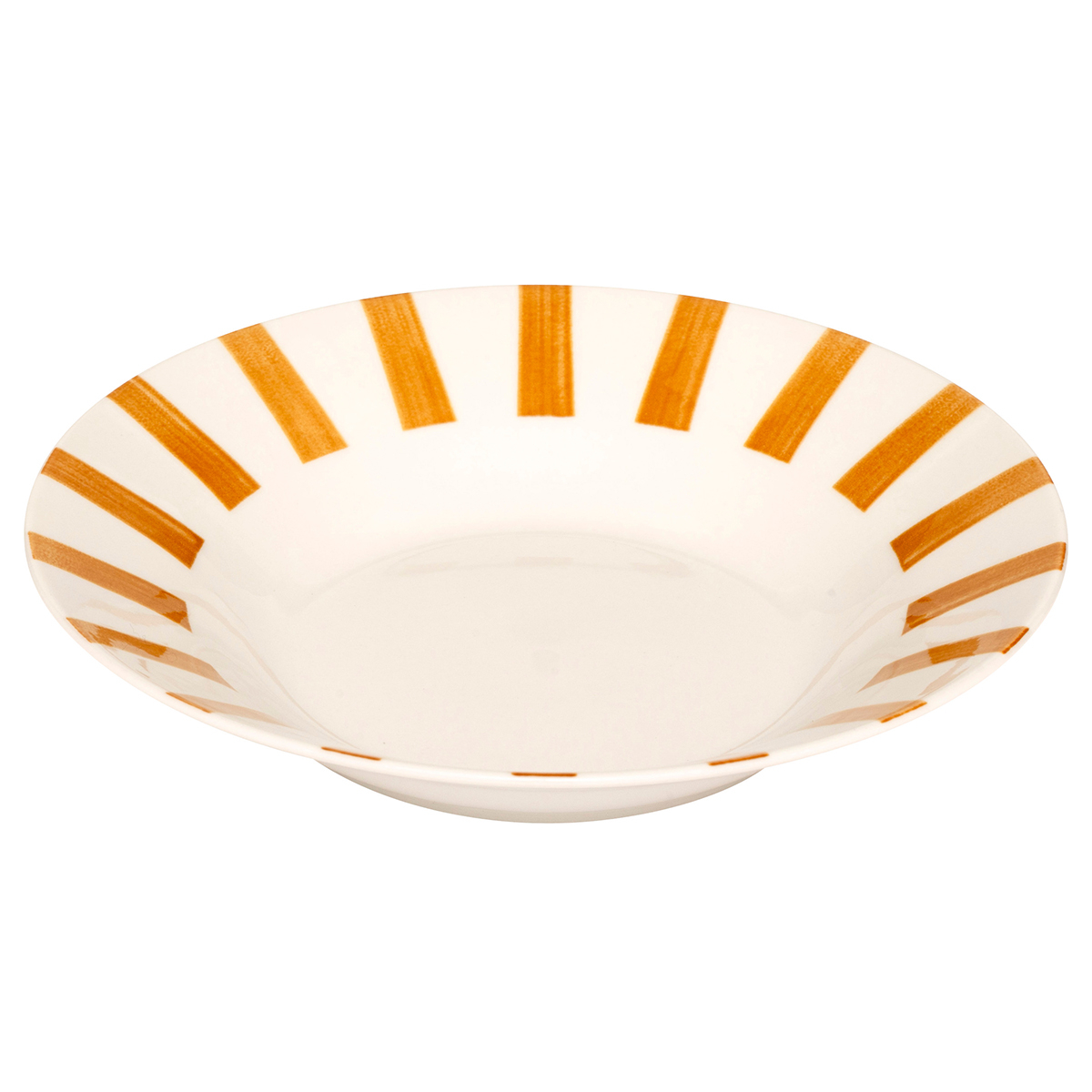 Πιάτο βαθύ για την σούπα ή τα δημητριακά σε λευκό χρώμα με μοντέρνο σχέδιο στο χρώμα της ώχρας, κατασκευασμένο από πορσελάνη. Η πορσελάνη είναι μη πορώδες υλικό, πράγμα που σημαίνει ότι δεν απορροφά υγρά ή οσμές. Αυτή της η ιδιότητα την καθιστά ιδανική για τρόφιμα και ροφήματα, καθώς είναι εύκολο να καθαριστεί και να διατηρηθεί χωρίς λεκέδες ή μυρωδιές. Ιδανικό πιάτο για να απολαύσετε το γεύμα σας. Συνδυάστε το με τα υπόλοιπα είδη του ίδιου σχεδίου για ένα ολοκληρωμένο αποτέλεσμα.
