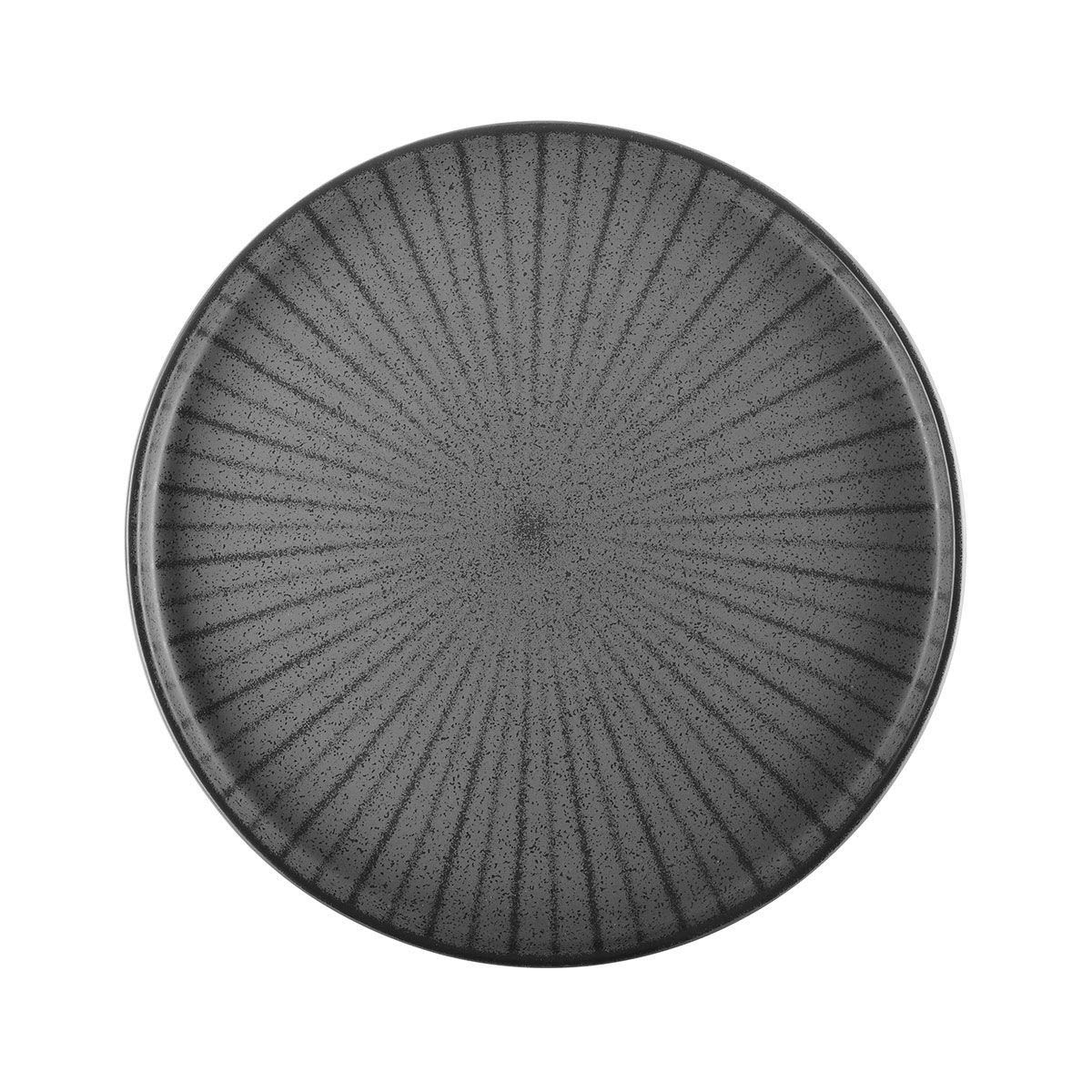Ρηχό πιάτο φαγητού σε ματ ανθρακί χρώμα από την εταιρεία εstia. Έχει μίνιμαλ σχέδιο με εντυπωσιακά stripe patterns και κάθετο χείλος. Είναι κατασκευασμένο από υψηλής ποιότητας πορσελάνη κατάλληλη για χρήση σε φούρνο μικροκυμάτων. Είναι ενισχυμένο περιμετρικά με αποτέλεσμα να έχει αντοχή στις ρωγμές, στην στοίβαξη στις γρατζουνιές από μαχαιροπίρουνα και στις απότομες μεταβολές της θερμοκρασίας.Συνδυάστε το με τα υπόλοιπα είδη του ίδιου σχεδίου για ένα ολοκληρωμένο αποτέλεσμα.
