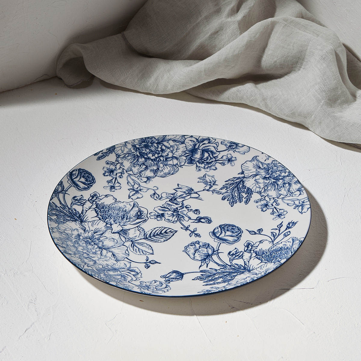 Ρηχό πιάτο φαγητού από την εταιρεία εstia σε λευκό χρώμα με μπλε φλοράλ σχέδιο. Είναι κατασκευασμένο από πορσελάνη. Συνδυάστε το με τα υπόλοιπα είδη της ίδιας σειράς για ένα ολοκληρωμένο σετ.