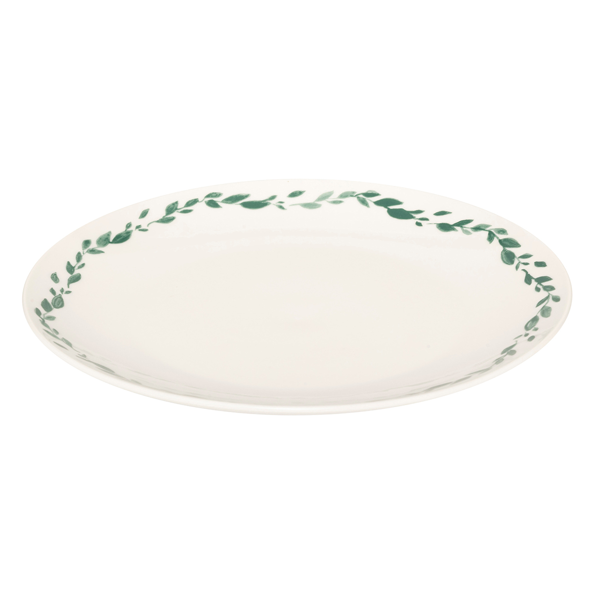 Ρηχό πιάτο φαγητού σε λευκό χρώμα με πράσινο μοντέρνο σχέδιο, κατασκευασμένο από πορσελάνη. Η πορσελάνη είναι μη πορώδης υλικό, πράγμα που σημαίνει ότι δεν απορροφά υγρά ή οσμές. Αυτή της η ιδιότητα την καθιστά ιδανική για τρόφιμα και ροφήματα, καθώς είναι εύκολο να καθαριστεί και να διατηρηθεί χωρίς λεκέδες ή μυρωδιές. Ιδανικό πιάτο για να απολαύσετε το φαγητό σας. Συνδυάστε το με τα υπόλοιπα είδη του ίδιου σχεδίου για ένα ολοκληρωμένο αποτέλεσμα.