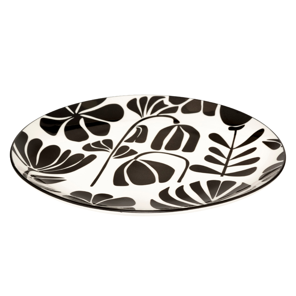 Ρηχό πιάτο φαγητού σε λευκό χρώμα με μαύρο φλοράλ σχέδιο, κατασκευασμένο από πορσελάνη. Η πορσελάνη είναι μη πορώδης υλικό, πράγμα που σημαίνει ότι δεν απορροφά υγρά ή οσμές. Αυτή της η ιδιότητα την καθιστά ιδανική για τρόφιμα και ροφήματα, καθώς είναι εύκολο να καθαριστεί και να διατηρηθεί χωρίς λεκέδες ή μυρωδιές. Ιδανικό πιάτο για να απολαύσετε το φαγητό σας. Συνδυάστε το με τα υπόλοιπα είδη του ίδιου σχεδίου για ένα ολοκληρωμένο αποτέλεσμα.