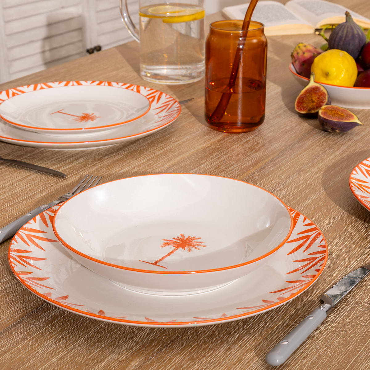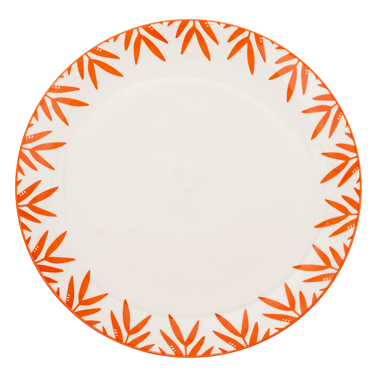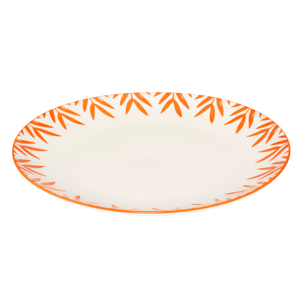 Ρηχό πιάτο φαγητού σε λευκό χρώμα με πορτοκαλί μοντέρνο σχέδιο, κατασκευασμένο από πορσελάνη. Η πορσελάνη είναι μη πορώδης υλικό, πράγμα που σημαίνει ότι δεν απορροφά υγρά ή οσμές. Αυτή της η ιδιότητα την καθιστά ιδανική για τρόφιμα και ροφήματα, καθώς είναι εύκολο να καθαριστεί και να διατηρηθεί χωρίς λεκέδες ή μυρωδιές. Ιδανικό πιάτο για να απολαύσετε το φαγητό σας. Συνδυάστε το με τα υπόλοιπα είδη του ίδιου σχεδίου για ένα ολοκληρωμένο αποτέλεσμα.