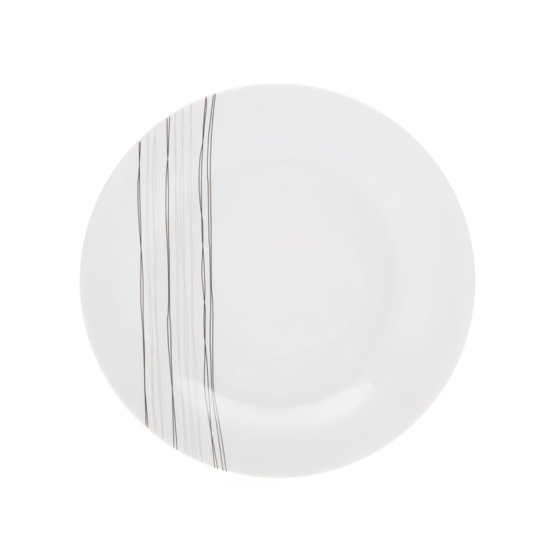 Πιάτο φρούτου - γλυκού σε λευκό χρώμα με μαύρο σχέδιο, κατασκευασμένο από πορσελάνη. Ιδανικό για να δώσει μία μοντέρνα πινελιά στα γεύματα και την κουζίνας σας. Συνδυάστε το με τα υπόλοιπα είδη του ίδιου σχεδίου για ένα ολοκληρωμένο αποτέλεσμα.