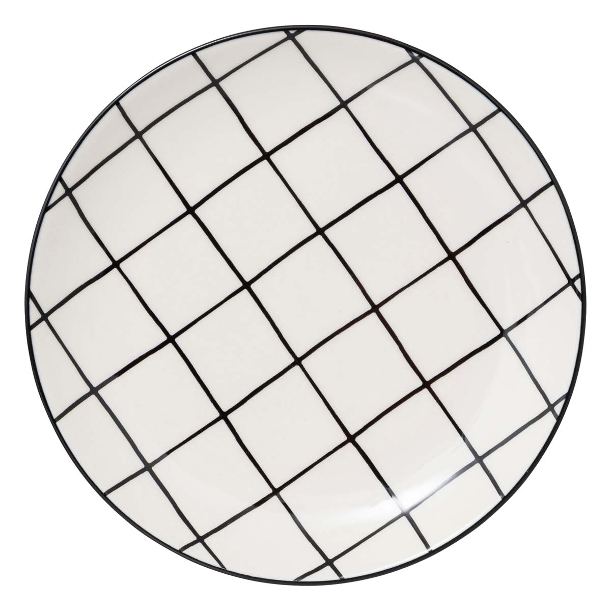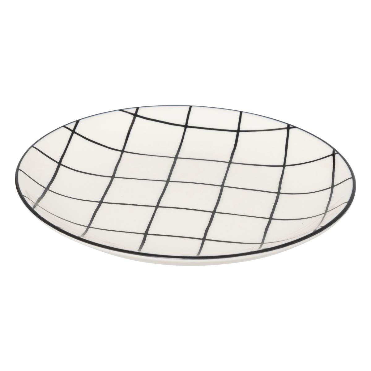 Πιάτο φρούτου ή γλυκού σε λευκό χρώμα με μαύρο καρό σχέδιο. Είναι κατασκευασμένο από κεραμικό υλικό. Συνδυάστε το με τα υπόλοιπα πιάτα του ίδιου σχεδίου για ένα ολοκληρωμένο σετ.