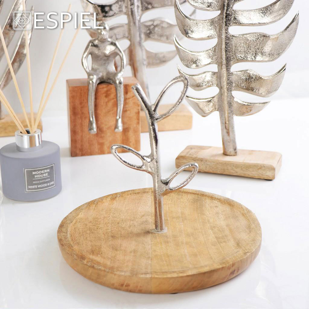 Πιατέλα διακόσμησης από την εταιρεία Espiel με μοντέρνο σχεδιασμό. Είναι κατασκευασμένη από ξύλο σε φυσική απόχρωση με ασημί μεταλλικές λεπτομέρειες. Ιδανική για να διακοσμήσετε το σπίτι σας και να δώσετε μια ιδιαίτερη πινελιά στην τραπεζαρία σας.