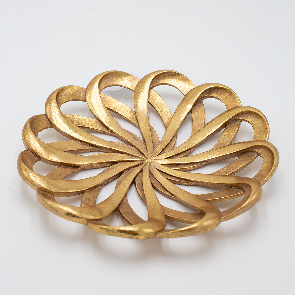Πιατέλα διακόσμησης της εταιρείας Estheti σε χρυσό χρώμα με μοντέρνο σχέδιο. Είναι κατασκευασμένη από πολυρεζίνη. Ιδανική για να διακοσμήσετε το σπίτι σας και να δώσετε μια ιδιαίτερη πινελιά στην τραπεζαρία σας. Τοποθετείστε σε κάποιο ράφι για να αναδείξετε την κομψότητα του χώρου σας.