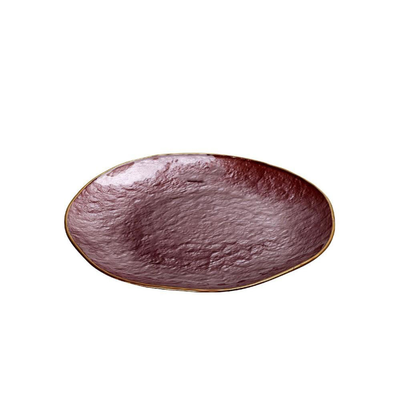 Διακοσμητική πιατέλα από την εταιρεία Espiel σε μωβ χρώμα με χρυσό περιμετρικό χείλος και μοντέρνο σχέδιο. Το χρώμα είναι αναμειγμένο με γκλίττερ χαρίζοντας μια ιδιαίτερη λάμψη. Είναι κατασκευασμένη από πορσελάνη. Τοποθετήστε την στην τραπεζαρία ή στο τραπεζάκι του σαλονιού σας και κλέψτε τις εντυπώσεις των καλεσμένων σας. Συνδυάστε τη με τα υπόλοιπα είδη της ίδιας σειράς για ένα ολοκληρωμένο σετ.