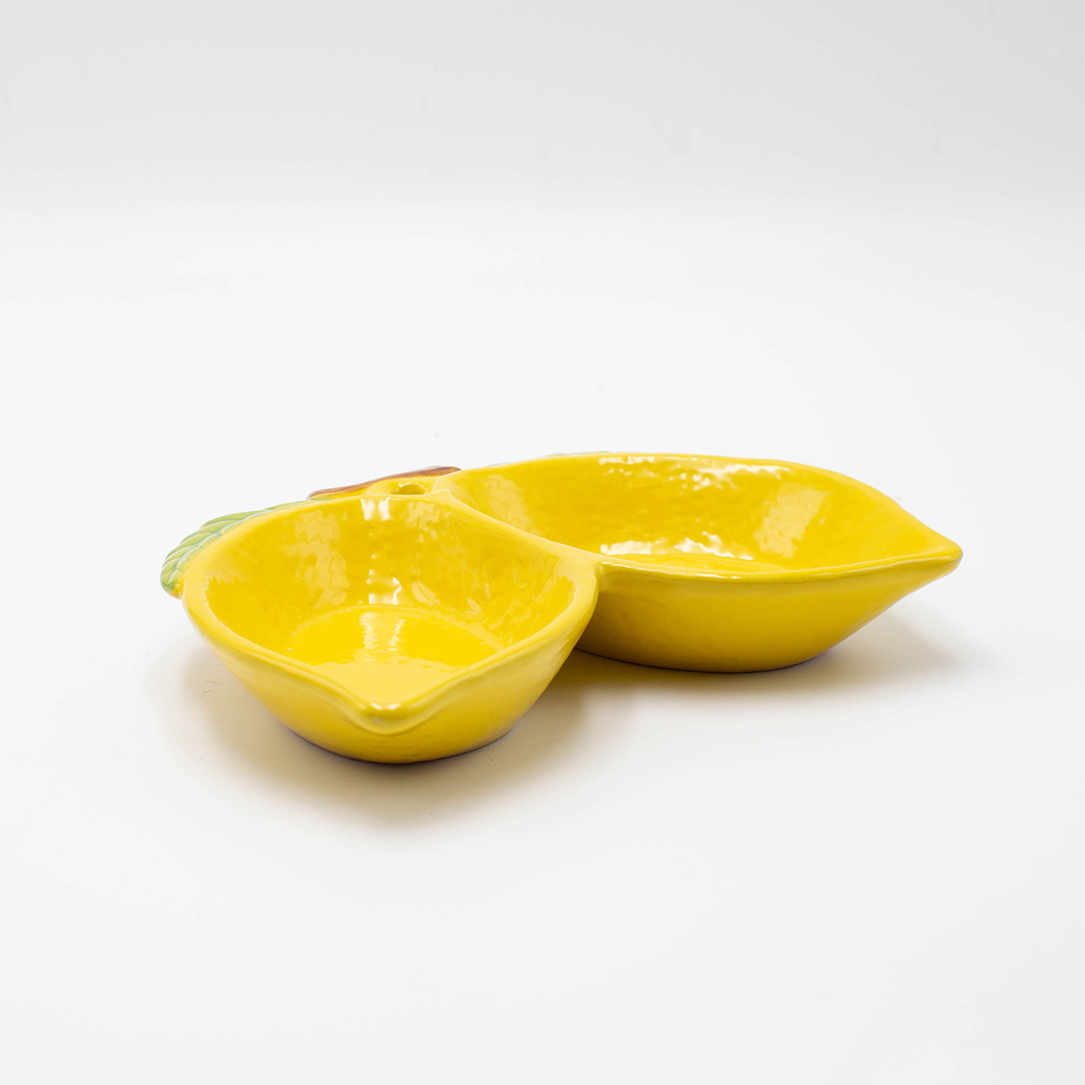 Πιατέλα διακόσμησης της εταιρείας Estheti σε κίτρινο χρώμα και σχήμα λεμόνια. Είναι κατασκευασμένη από κεραμικό υλικό. Ιδανική για να διακοσμήσετε το σπίτι σας και να δώσετε μια ιδιαίτερη πινελιά στην τραπεζαρία σας. Τοποθετείστε σε κάποιο ράφι για να αναδείξετε την κομψότητα του χώρου σας.