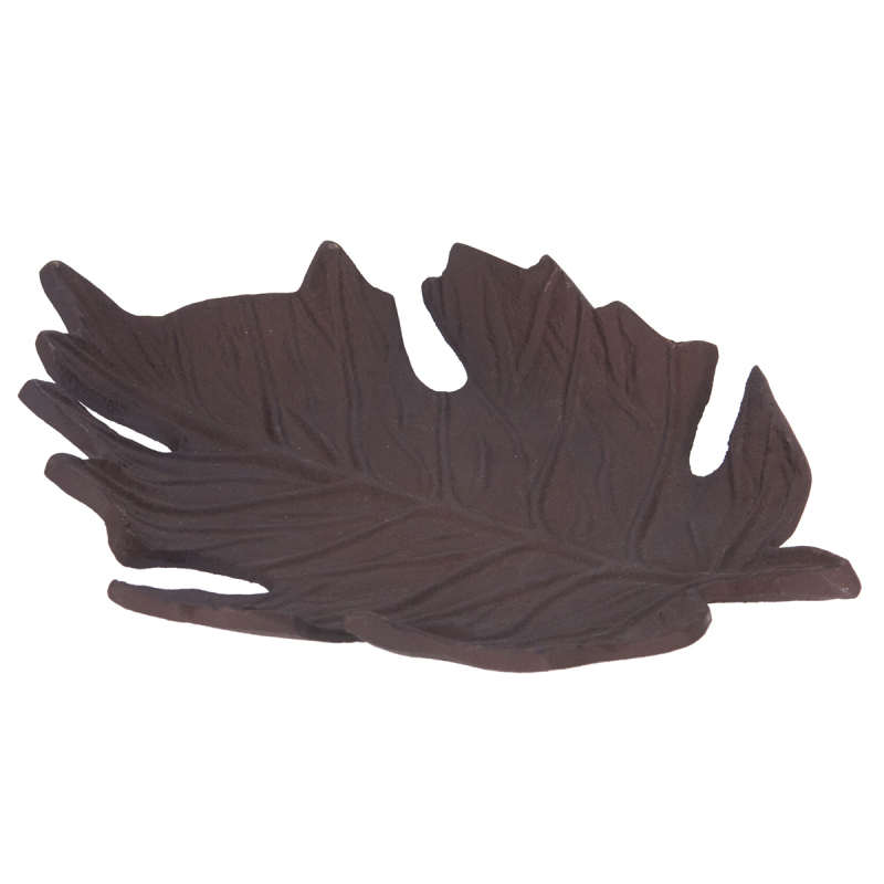 Πιατέλα διακόσμησης σε σχήμα φύλλου. Είναι κατασκευασμένη από αλουμίνιο με ανάγλυφο σχήμα και έχει σκούρο καφέ χρώμα. Ιδανική για να δώσει μοναδικό στυλ στην διακόσμηση της κουζίνας, της τραπεζαρίας ή όποιου χώρου επιλέξετε να την τοποθετήσετε. Συνδυάστε τη με άλλα διακοσμητικά για να δημιουργήσετε την ατμόσφαιρα που επιθυμείτε.