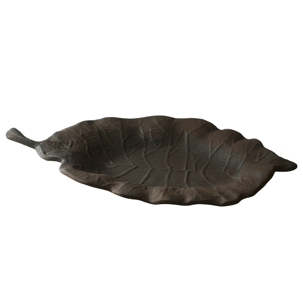 Πιατέλα διακόσμησης σε σχήμα φύλλου. Είναι κατασκευασμένη από αλουμίνιο με ανάγλυφο σχήμα και έχει σκούρο καφέ χρώμα. Ιδανική για να δώσει μοναδικό στυλ στην διακόσμηση της κουζίνας, της τραπεζαρίας ή όποιου χώρου επιλέξετε να την τοποθετήσετε. Συνδυάστε τη με άλλα διακοσμητικά για να δημιουργήσετε την ατμόσφαιρα που επιθυμείτε.