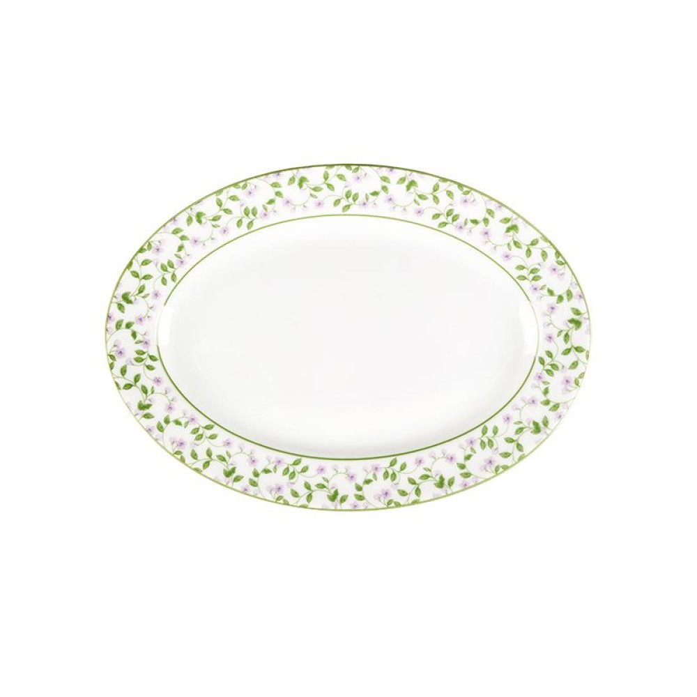 Πιατέλα σερβιρίσματος οβάλ από την εταιρεία Oriana Ferelli σε λευκό χρώμα με πράσινο και λιλά φλοράλ σχέδιο. Είναι κατασκευασμένη από υψηλής ποιότητας πορσελάνη. Το υλικό της εξασφαλίζει αντοχή και μακροχρόνια χρήση. Ιδανική για να σερβίρετε διάφορα εδέσματα. Συνδυάστε τη με τα υπόλοιπα είδη της ίδιας σειράς για ένα ολοκληρωμένο σετ.