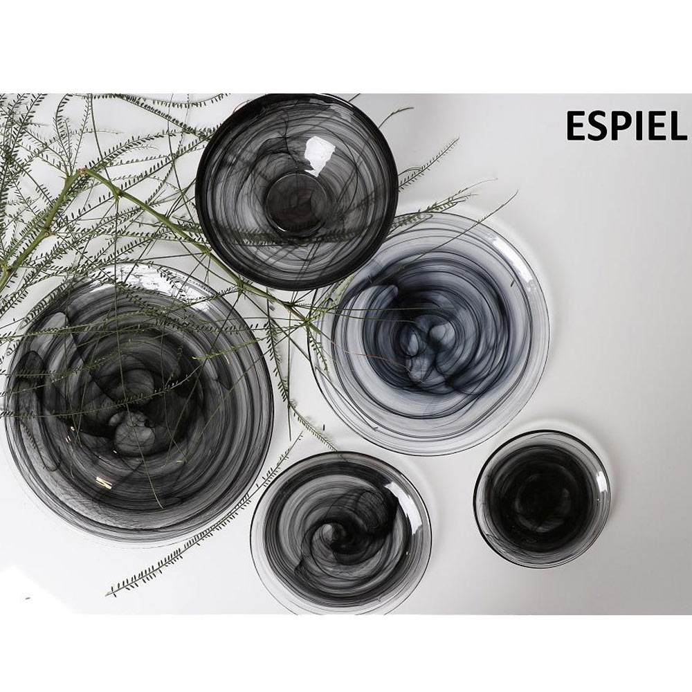 Πιατέλα σερβιρίσματος με μοντέρνολο σχέδιο της εταιρείας Espiel. Είναι κατασκευασμένη από διάφανο γυαλί με μαύρες λεπτομέρειες. Είναι κατάλληλη για τρόφιμα, πλένεται στο πλυντήριο πιάτων και μπορεί να τοποθετηθεί στον φούρνο μικροκυμάτων. Συνδυάστε τη με τα προϊόντα της ίδιας σειράς για ένα ολοκληρωμένο αποτέλεσμα.