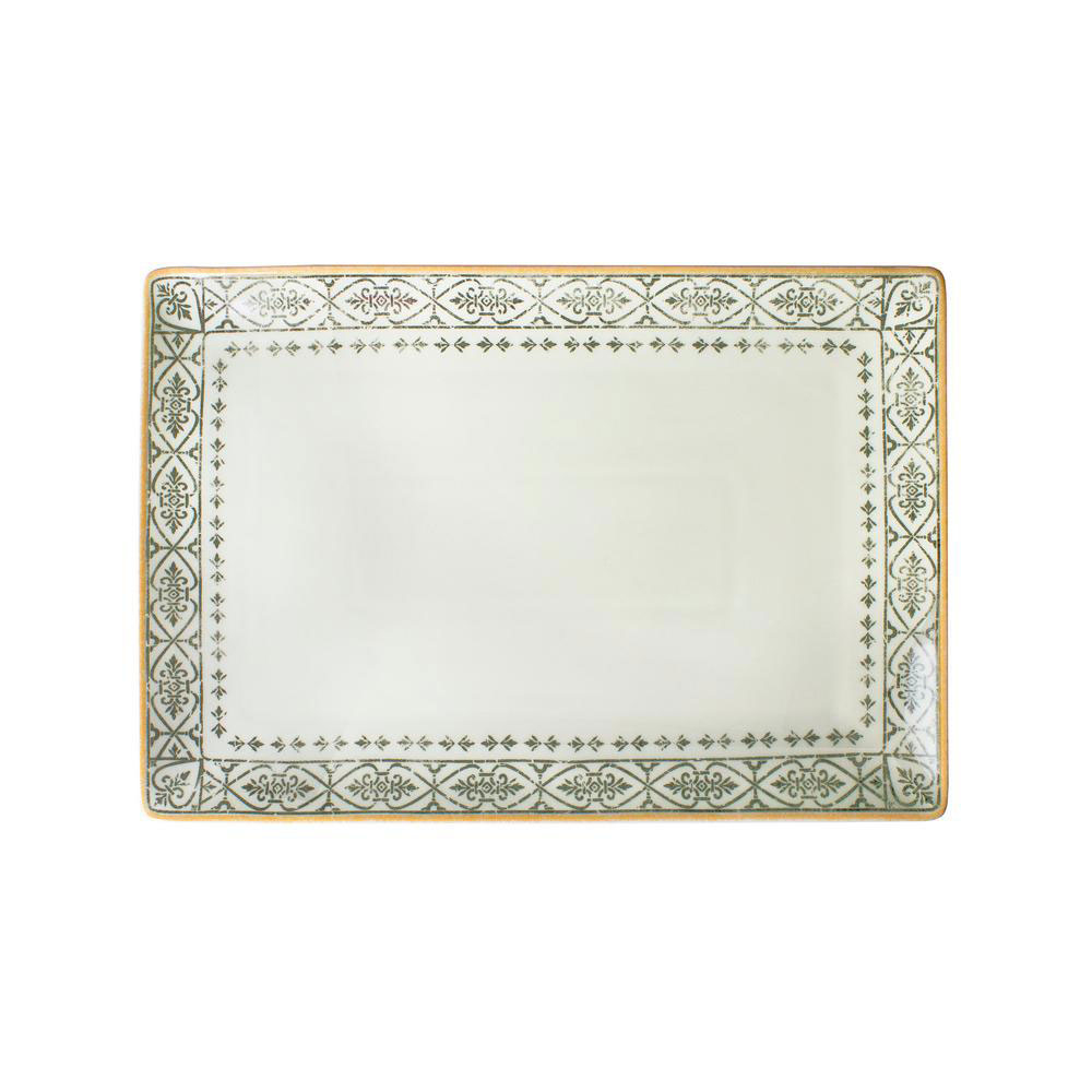 Πιατέλα σερβιρίσματος ορθογώνια από την εταιρεία Oriana Ferelli με vintage σχέδιο σε μπεζ χρώμα με πράσινες λεπτομέρειες. Είναι κατασκευασμένη από πορσελάνη σε μπεζ χρώμα. Συνδυάστε τη με τα υπόλοιπα είδη της ίδιας σειράς για ένα ολοκληρωμένο σετ.