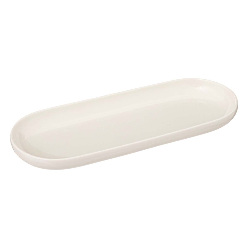 Πιατέλα σερβιρίσματος κατασκευασμένη από πορσελάνη σε λευκό χρώμα. Έχει οβάλ σχήμα και μίνιμαλ σχεδιασμό. Ιδανική για να σερβίρετε μικρούς μεζέδες στο τραπέζι σας.