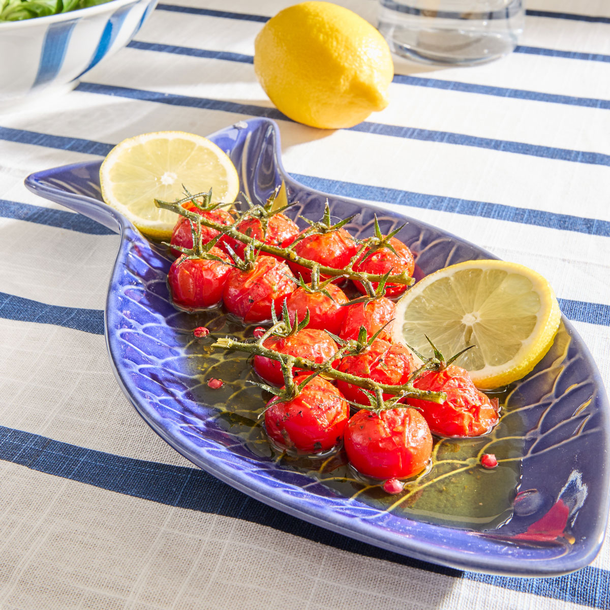 Πιατέλα σερβιρίσματος σε μπλε χρώμα και σχήμα ψαριού. Είναι κατασκευασμένη από κεραμικό υλικό κατάλληλο για επαφή με τρόφιμα. Ξεχωρίζει για την λειτουργικότητα και την αισθητική του. Ολοκληρώστε την σύνθεση συνδυάζοντάς την με τα υπόλοιπα προϊόντα της ίδιας σειράς.