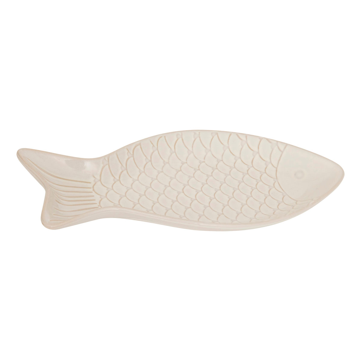 Πιατέλα σερβιρίσματος σε εκρού χρώμα και σχήμα ψαριού. Είναι κατασκευασμένη από κεραμικό υλικό κατάλληλο για επαφή με τρόφιμα. Ξεχωρίζει για την λειτουργικότητα και την αισθητική του. Ολοκληρώστε την σύνθεση συνδυάζοντάς την με τα υπόλοιπα προϊόντα της ίδιας σειράς.