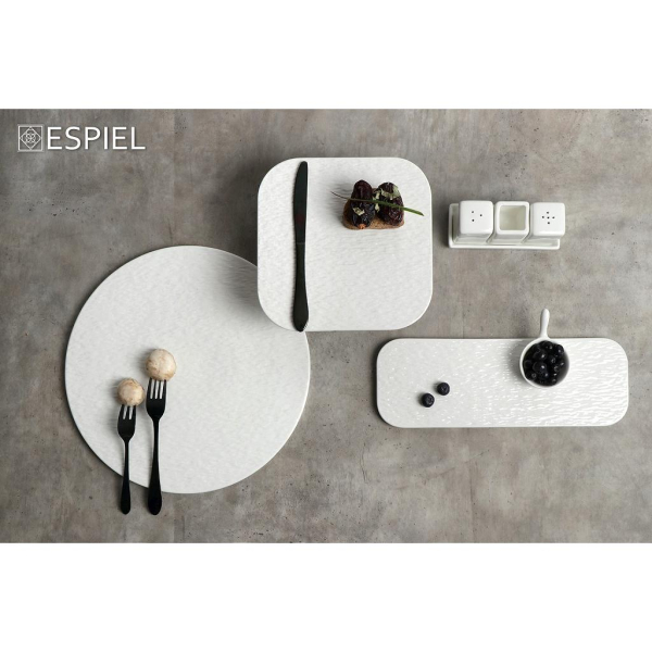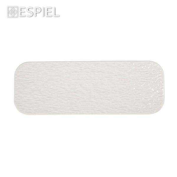 Πιατέλα σερβιρίσματος από την εταιρεία Espiel με ορθογώνιο σχήμα σε λευκό χρώμα και ανάγλυφη επιφάνεια. Είναι κατασκευασμένη από πορσελάνη, κατάλληλη για τρόφιμα. Πλένεται στο πλυντήριο πιάτων και μπορεί να χρησιμοποιηθεί στον φούρνο μικροκυμάτων. Ιδανική για να σερβίρετε το φαγητό σας ή για να το συνδυάσετε με άλλα διακοσμητικά είδη και να στολίσετε τον χώρο σας.