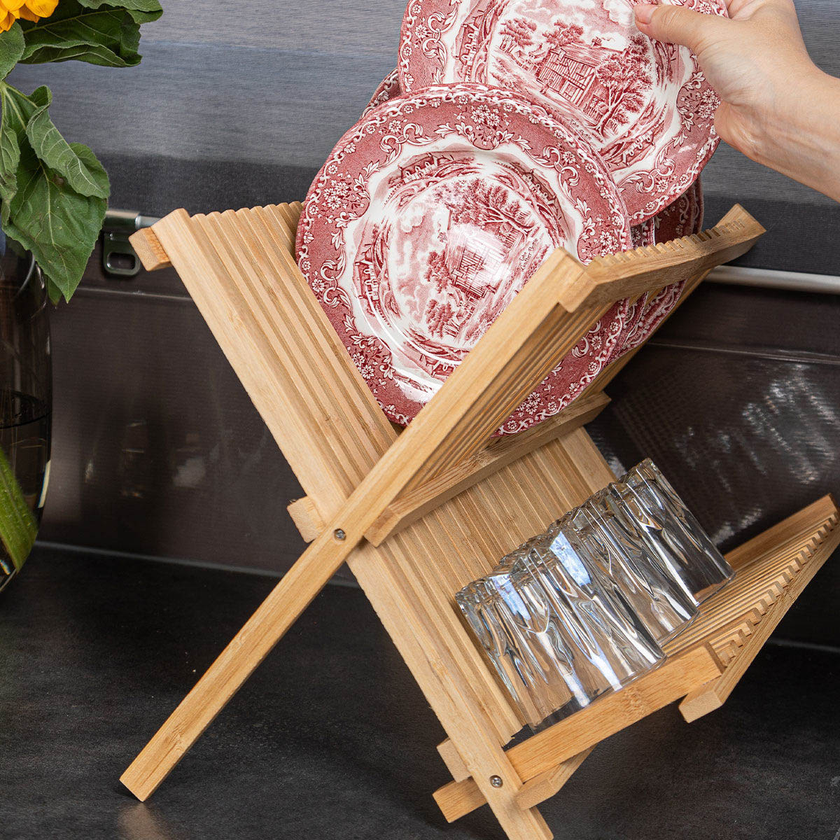 Πιατοθήκη - στραγγιστήρι για τα πιάτα της κουζίνας σας από την εταιρεία εstia. Είναι κατασκευασμένη από υψηλής ποιότητας bamboo σε φυσική απόχρωση. Είναι πολύ πρακτική καθώς κλείνει και ανοίγει εύκολα για εξοικονόμηση χώρου.