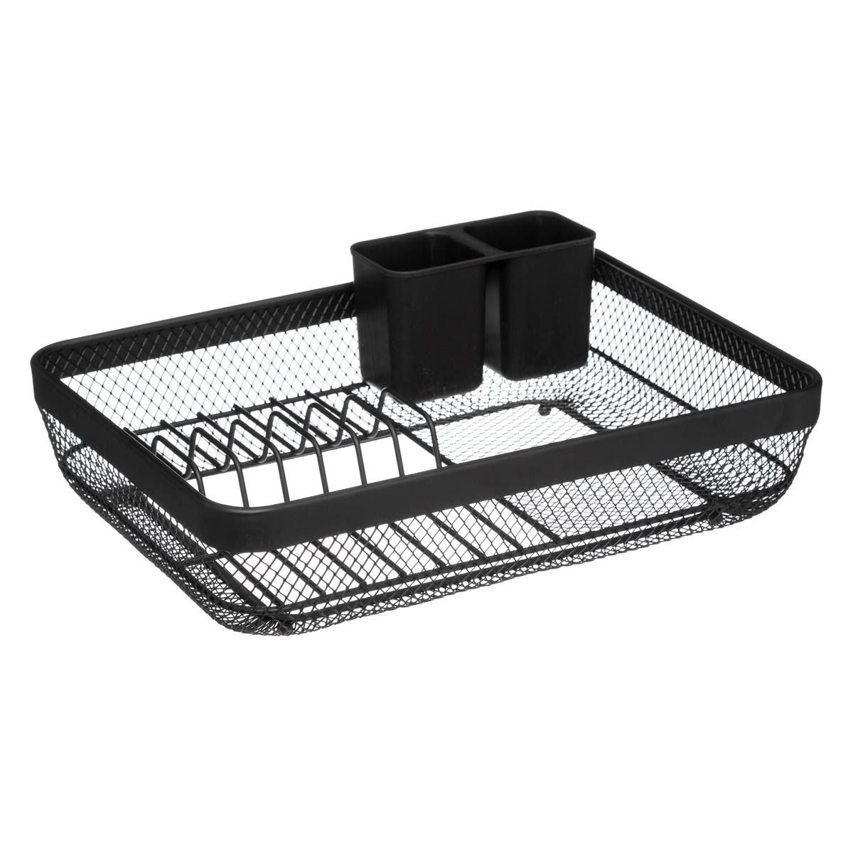 Πιατοθήκη - στραγγιστήρι για τα πιάτα της κουζίνας σας. Είναι κατασκευασμένη από μέταλλο σε μαύρο χρώμα και έχει πλαστικό δίσκο. Διαθέτει κουταλοθήκη και έχει χωρητικότητα για 6 πιάτα και 7 ποτήρια.