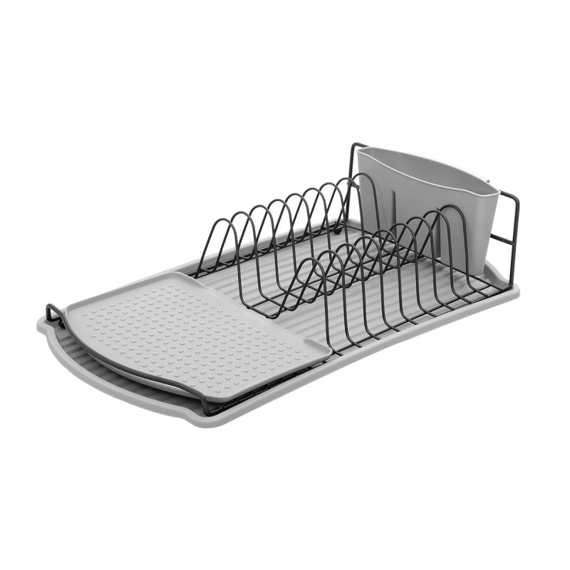 Πλαστική πιατοθήκη της εταιρείας εstia σε γκρι χρώμα. Το μικρό της μέγεθος την καθιστά ιδανική ακόμα και για κουζίνες με περιορισμένο χώρο. Έχει επιφάνεια για στράγγιξη ποτηριών, θήκες για πιάτα και μαχαιροπήρουνα.