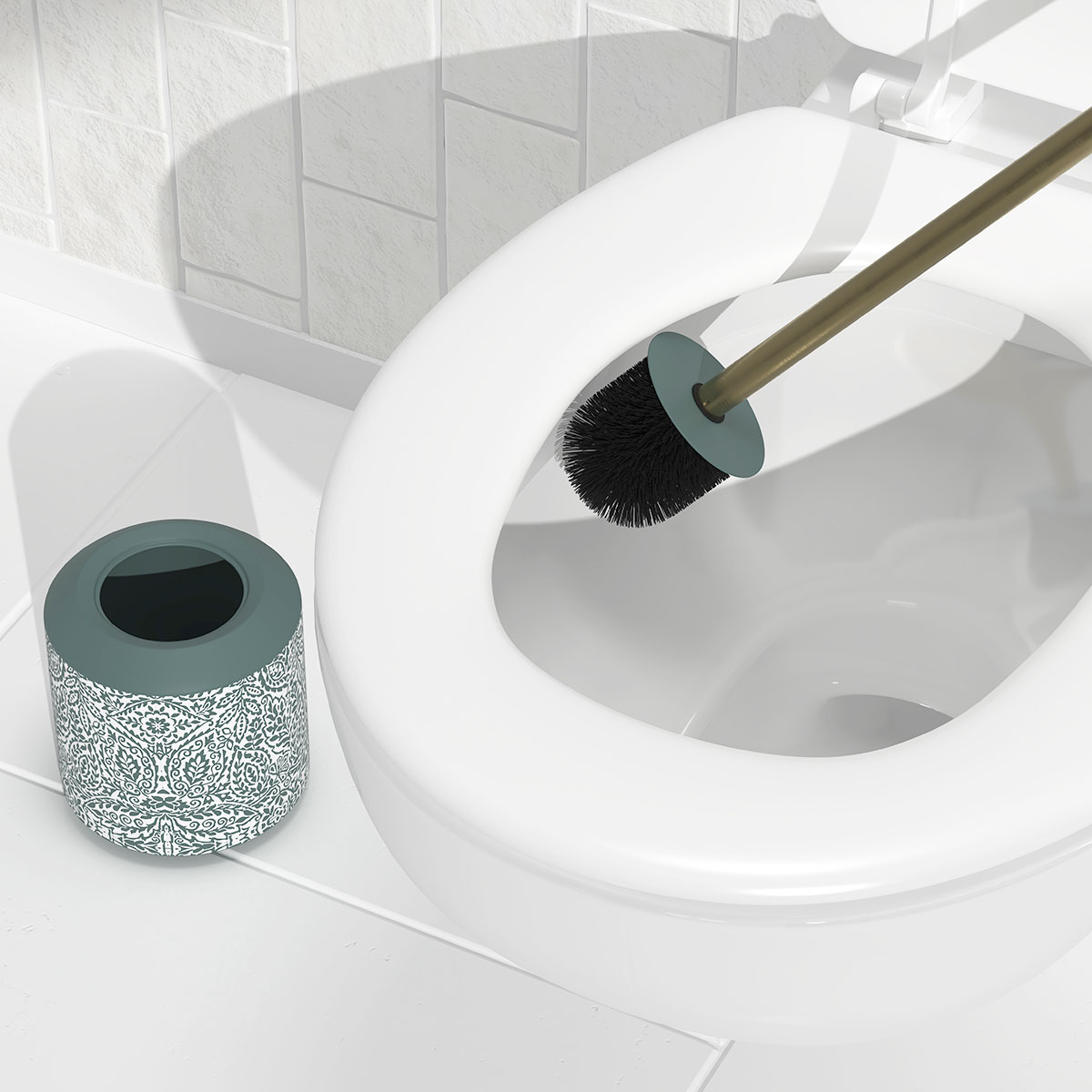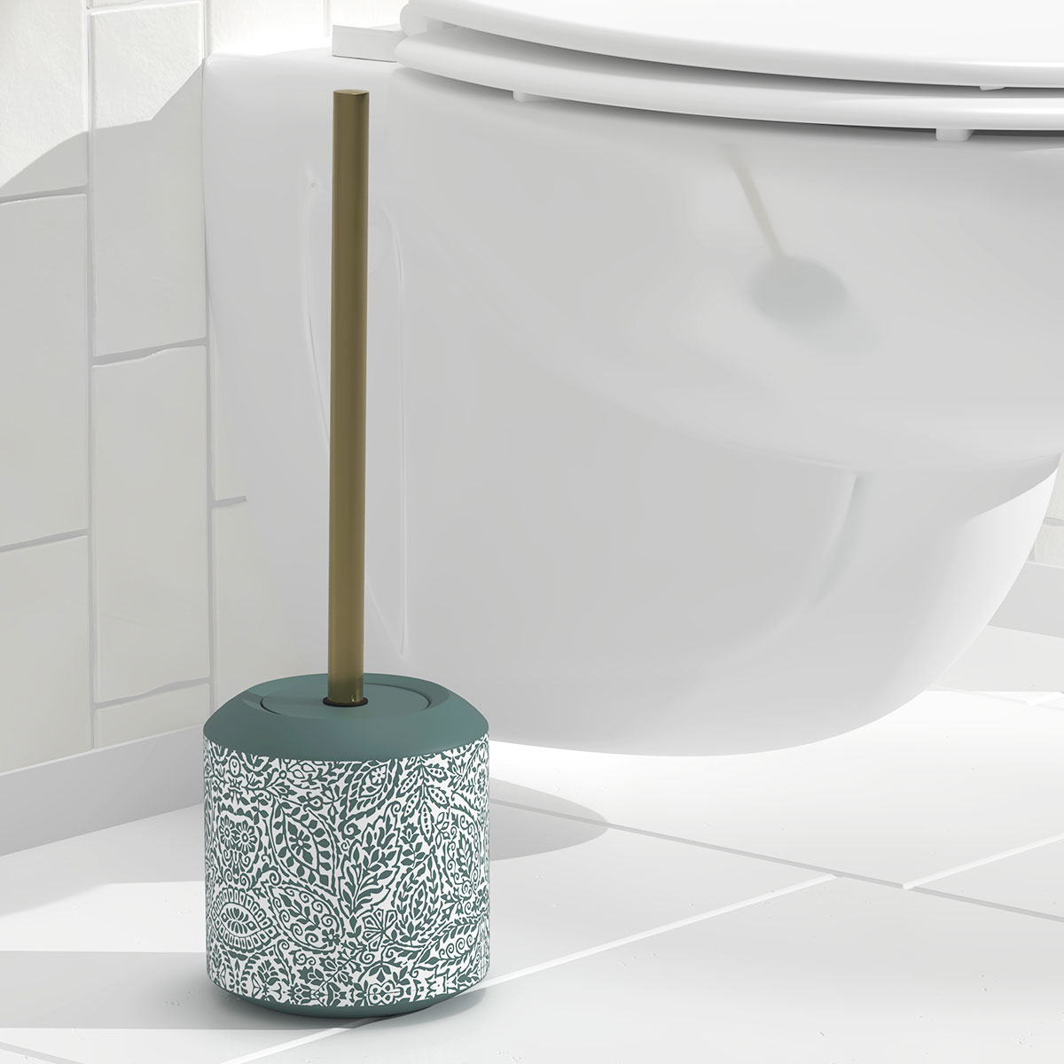 Πιγκάλ με μοντέρνο σχεδιασμό. Είναι κατασκευασμένο από κεραμικό υλικό (δολομίτη) σε χακί χρώμα με λευκό σχέδιο και χρυσή μεταλλική λαβή. Διαθέτει μαύρο βουρτσάκι. Ιδανικό να ταιριάξει σε κάθε μπάνιο. Συνδυάστε το με τα υπόλοιπα προϊόντα του ίδιου σετ για ένα ολοκληρωμένο αποτέλεσμα.