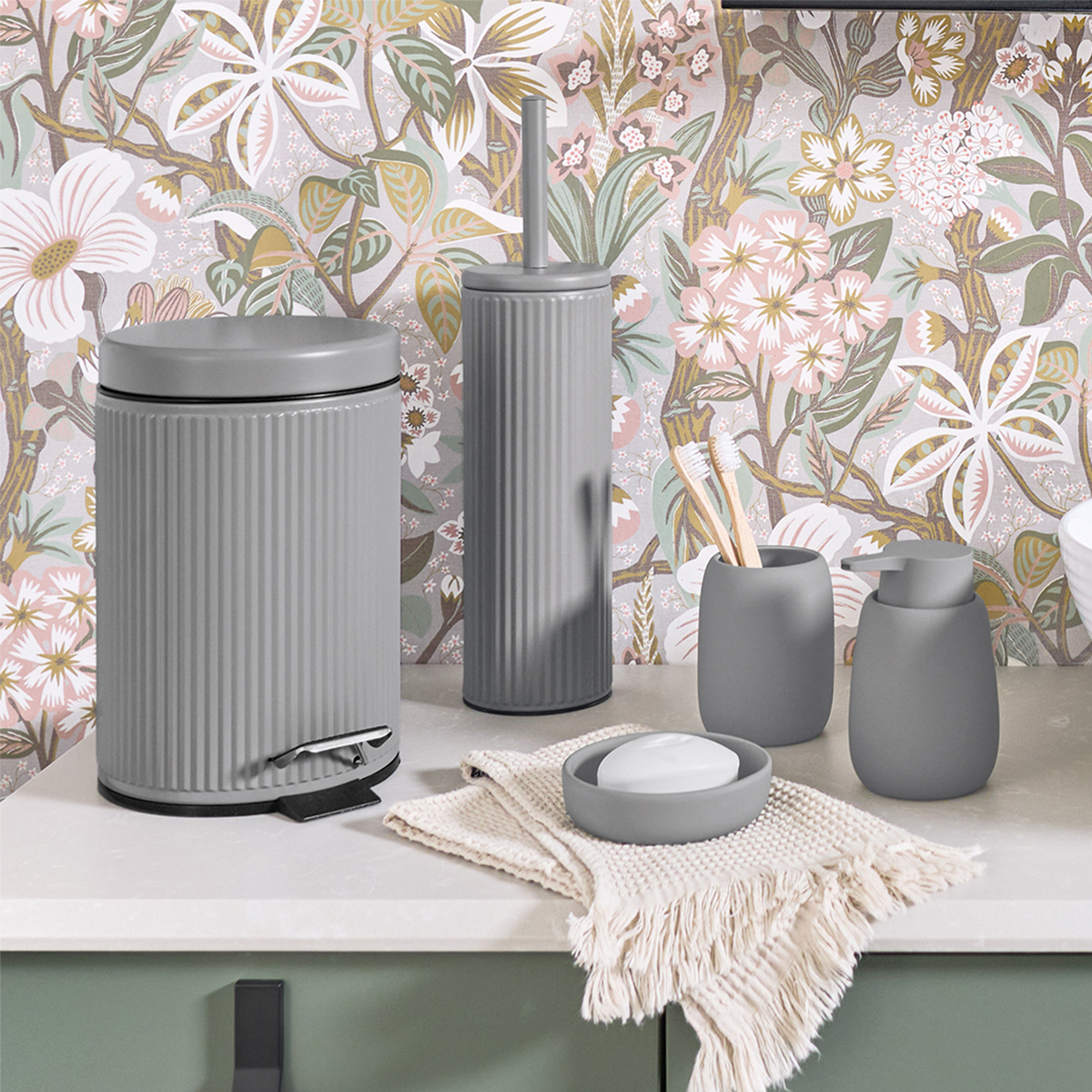 Πιγκάλ κατασκευασμένο από μεταλλικό υλικό σε γκρι χρώμα με ανάγλυφο σχέδιο. Ιδανικό πιγκάλ που θα ταιριάξει με όλα τα είδη διακόσμησης. Συνδυάστε το με τα υπόλοιπα είδη της ίδιας σειράς για ένα ολοκληρωμένο αποτέλεσμα στο μπάνιο σας.