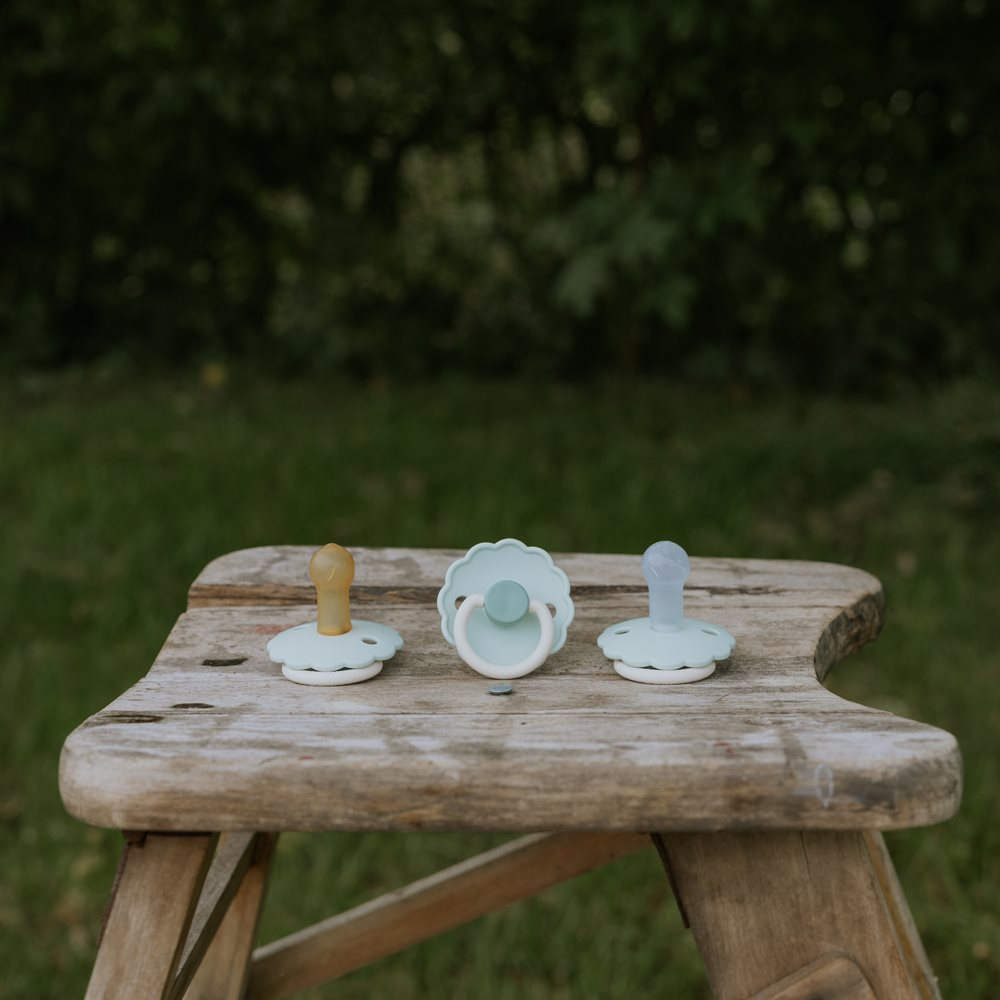 Πιπίλες φυσιολογικές από την εταιρεία Frigg σε βεραμάν και εκρού χρώμα. Είναι κατασκευασμένες η ασπίδα από 100% πολυπροπυλένιο και τη θηλή από σιλικόνη ιατρικής ποιότητας. Είναι απαλλαγμένες από BPA, BPS, PVC και φθαλικές ενώσεις. Ο σχεδιασμός τους βασίζεται στην ανατομία του στήθους μιας μητέρας, τόσο σε σχήμα όσο και σε υλικό. Όταν το παιδί πιπιλάει μια στρογγυλή πιπίλα, κυλάει τη γλώσσα του γύρω της με τον ίδιο τρόπο με τον οποίο θηλάζει. Η εταιρεία Frigg έχει ένα πατενταρισμένο σύστημα Click-lock® για τη συναρμολόγηση των πιπιλών, που εξασφαλίζει ότι τα κομμάτια είναι απόλυτα σταθερά και δεν αποσπώνται. Έτσι ελαχιστοποιεί τον κίνδυνο πνιγμού από μικρά κομμάτια, καθώς η πιπίλα είναι εξαιρετικά ανθεκτική. Πριν χρησιμοποιηθεί η πιπίλα για πρώτη φορά θα πρέπει να αποστειρωθεί. Καθαρίζεται εύκολα και αποστειρώνεται σε βραστό νερό. Δοκιμασμένο και εγκεκριμένο προϊόν σύμφωνα με το ευρωπαϊκό πρότυπο ασφαλείας EN1400 + A2. Μέτρο θηλής: 27mm.