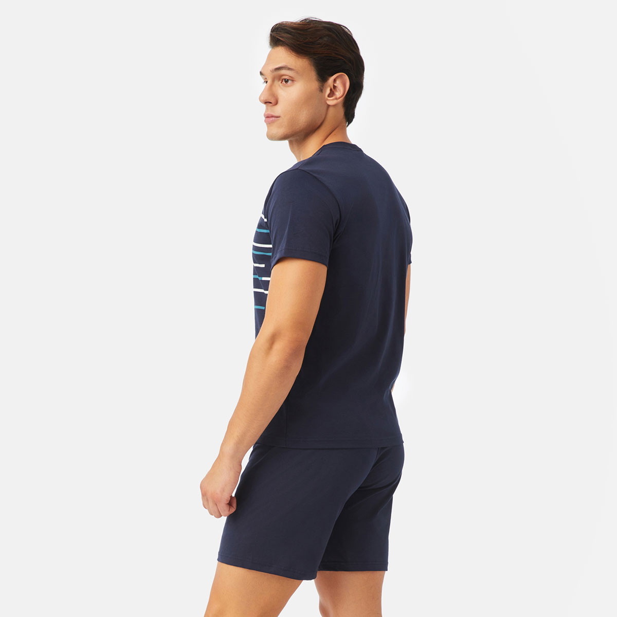 Ανδρικές πιτζάμες από την εταιρεία Minerva σε μπλε χρώμα με ριγέ σχέδιο. Πρόκειται για κοντομάνικη μπλούζα με στρογγυλή λαιμόκοψη σε στενή γραμμή. Συνδυάζεται με μονόχρωμη βερμούδα. Είναι κατασκευασμένες από 100% βαμβακερό ύφασμα πεννιέ, που προσδίδει ιδιαίτερη απαλότητα, αντοχή και σωστή εφαρμογή. Είναι ιδιαίτερα ανθεκτικές και διατηρούν τη φόρμα τους. Τα χρώματα έχουν δημιουργηθεί με την μέθοδο της νηματοβαφής (μέσα στην ύφανση), με αποτέλεσμα να παραμένουν αναλλοίωτα στην χρήση και τις πλύσεις. Τα προϊόντα Minerva διαθέτουν τα διεθνή πιστοποιητικά ποιότητας και ασφάλειας ISO 9001:2000 , ISO 9002, Oeko-Tex Standard 100, Eco Textile Label. Σε όλα τα στάδια παραγωγής έχουν χρησιμοποιηθεί υποαλλεργικά υλικά χωρίς επιβλαβείς ουσίες προς την υγεία. Αποτελούν προϊόντα ελληνικής ραφής με την εγγύηση ποιότητας και αξιοπιστίας της εταιρείας Minerva.