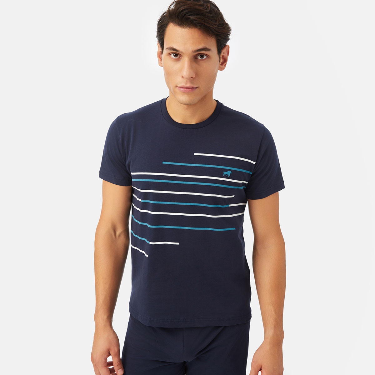 Πιτζάμα Ανδρική Καλοκαιρινή Minerva Stripe Bull Print 71419-200 Μαρίν