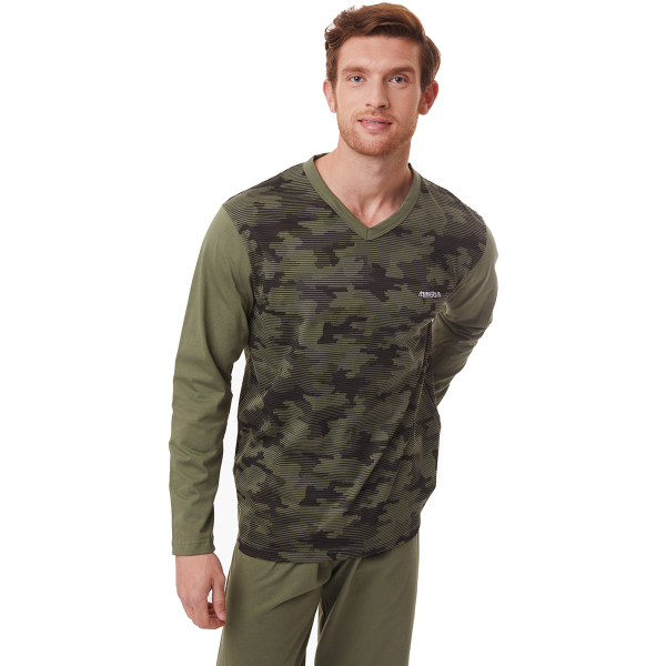 Πιτζάμα Ανδρική Χειμωνιάτικη Minerva 70938-860 Χακί