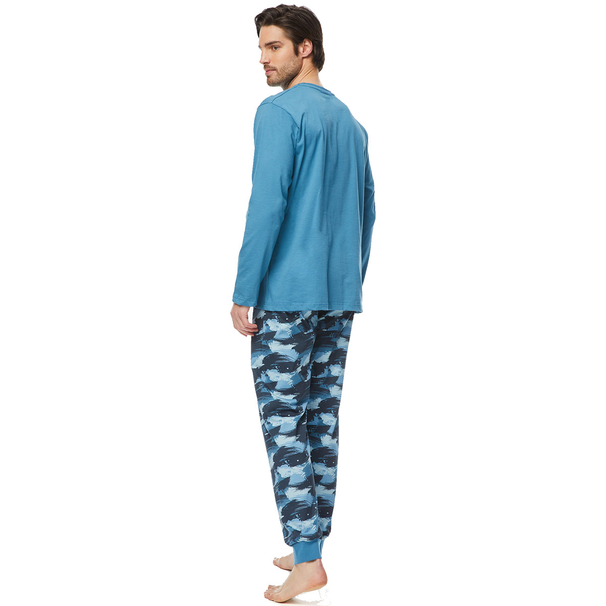Ανδρικές πιτζάμες της εταιρείας Minerva σε γαλάζιες αποχρώσεις. Πρόκειται για μακρυμάνικη μπλούζα με στρογγυλή λαιμόκοψη και μοντέρνο σχέδιο. Το σετ ολοκληρώνεται από εμπριμέ παντελόνι με μανσέτες στα μπατζάκια. Είναι κατασκευασμένες από 100% βαμβακερό ύφασμα, που προσδίδει ιδιαίτερη απαλότητα, αντοχή και σωστή εφαρμογή. Είναι ιδιαίτερα ανθεκτικές και διατηρούν τη φόρμα τους. Τα χρώματα έχουν δημιουργηθεί με την μέθοδο της νηματοβαφής (μέσα στην ύφανση), με αποτέλεσμα να παραμένουν αναλλοίωτα στην χρήση και τις πλύσεις. Τα προϊόντα Minerva διαθέτουν τα διεθνή πιστοποιητικά ποιότητας και ασφάλειας ISO 9001:2000 , ISO 9002, Oeko-Tex Standard 100, Eco Textile Label. Σε όλα τα στάδια παραγωγής έχουν χρησιμοποιηθεί υποαλλεργικά υλικά χωρίς επιβλαβείς ουσίες προς την υγεία. Αποτελούν προϊόντα ελληνικής ραφής με την εγγύηση ποιότητας και αξιοπιστίας της εταιρείας Minerva.