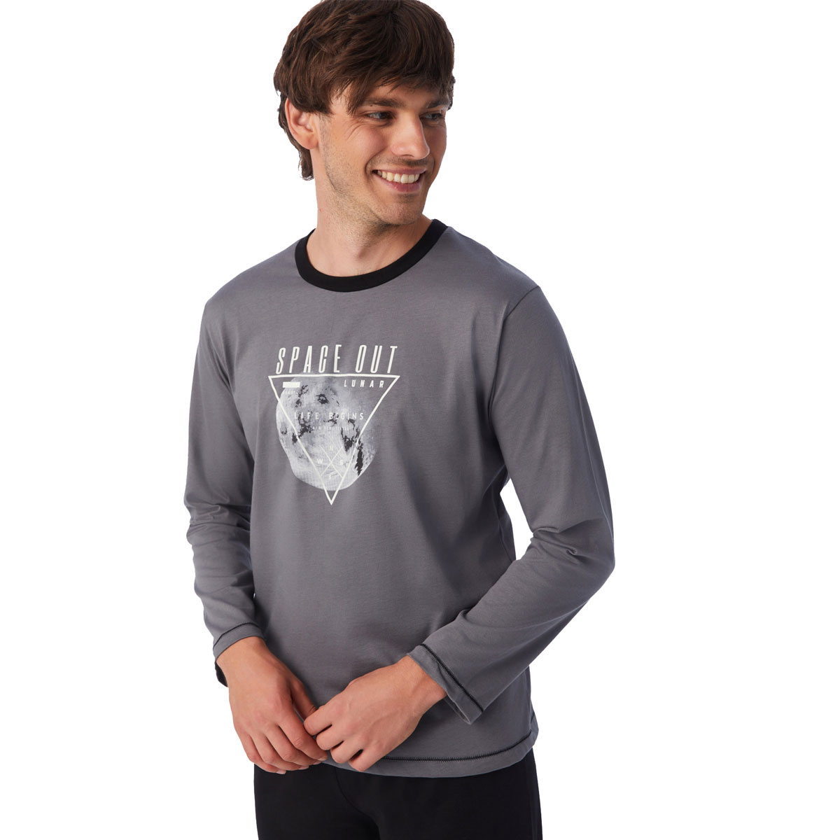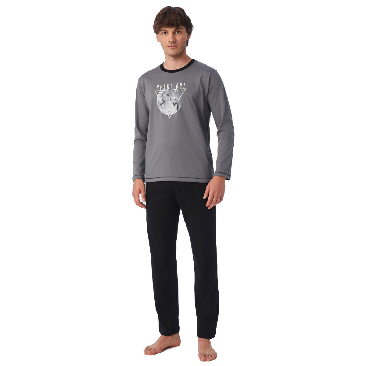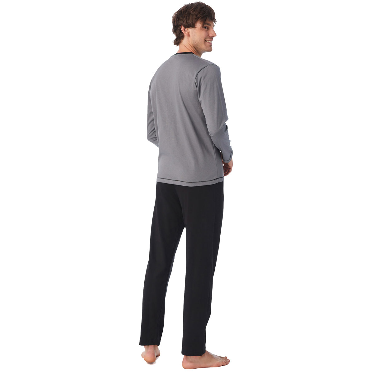 Ανδρικές πιτζάμες από την εταιρεία Minerva σε μαύρο και γκρι χρώμα με μοντέρνο σχέδιο. Πρόκειται για μακρυμάνικη μπλούζα με στρογγυλή λαιμόκοψη. Το σετ ολοκληρώνεται από κομψό παντελόνι σε ίσια γραμμή. Είναι κατασκευασμένες από 100% βαμβακερό ύφασμα, που προσδίδει ιδιαίτερη απαλότητα, αντοχή και σωστή εφαρμογή. Είναι ιδιαίτερα ανθεκτικές και διατηρούν τη φόρμα τους. Τα χρώματα έχουν δημιουργηθεί με την μέθοδο της νηματοβαφής (μέσα στην ύφανση), με αποτέλεσμα να παραμένουν αναλλοίωτα στην χρήση και τις πλύσεις. Τα προϊόντα Minerva διαθέτουν τα διεθνή πιστοποιητικά ποιότητας και ασφάλειας ISO 9001:2000 , ISO 9002, Oeko-Tex Standard 100, Eco Textile Label. Σε όλα τα στάδια παραγωγής έχουν χρησιμοποιηθεί υποαλλεργικά υλικά χωρίς επιβλαβείς ουσίες προς την υγεία. Αποτελούν προϊόντα ελληνικής ραφής με την εγγύηση ποιότητας και αξιοπιστίας της εταιρείας Minerva.