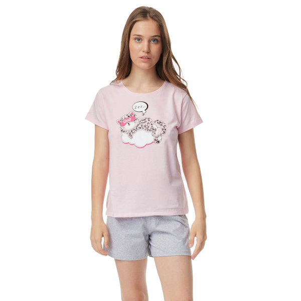 Πιτζάμα Γυναικεία Καλοκαιρινή Minerva Sleepy Cats 52347-133 Γκρι