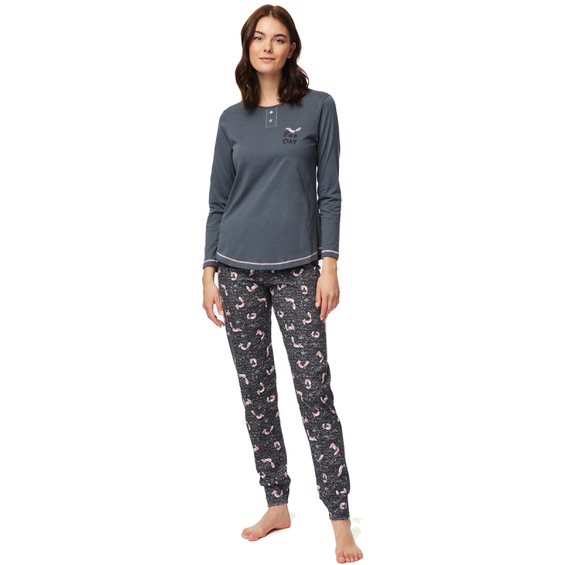 Πιτζάμα Γυναικεία Χειμωνιάτικη Minerva Fox Day 52224-102 Γκρι