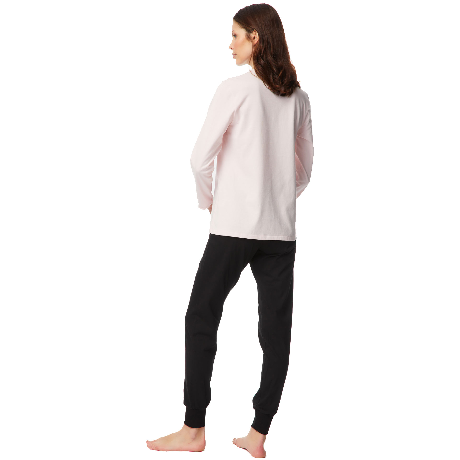 Γυναικείες πιτζάμες από την εταιρεία Minerva σε ροζ και μαύρο χρώμα. Πρόκειται για μακρυμάνικη μπλούζα με στρογγυλή λαιμόκοψη και μοντέρνο σχέδιο. Το σετ ολοκληρώνεται από μονόχρωμο μαύρο παντελόνι με μανσέτες στα μπατζάκια για μεγαλύτερη άνεση και ζεστασιά. Είναι κατασκευασμένες από 100% βαμβακερό ύφασμα, που προσδίδει ιδιαίτερη απαλότητα, αντοχή και σωστή εφαρμογή. Είναι ιδιαίτερα ανθεκτικές και διατηρούν τη φόρμα τους. Τα χρώματα έχουν δημιουργηθεί με την μέθοδο της νηματοβαφής (μέσα στην ύφανση), με αποτέλεσμα να παραμένουν αναλλοίωτα στην χρήση και τις πλύσεις. Τα προϊόντα Minerva διαθέτουν τα διεθνή πιστοποιητικά ποιότητας και ασφάλειας ISO 9001:2000 , ISO 9002, Oeko-Tex Standard 100, Eco Textile Label. Σε όλα τα στάδια παραγωγής έχουν χρησιμοποιηθεί υποαλλεργικά υλικά χωρίς επιβλαβείς ουσίες προς την υγεία. Αποτελούν προϊόντα ελληνικής ραφής με την εγγύηση ποιότητας και αξιοπιστίας της εταιρείας Minerva.