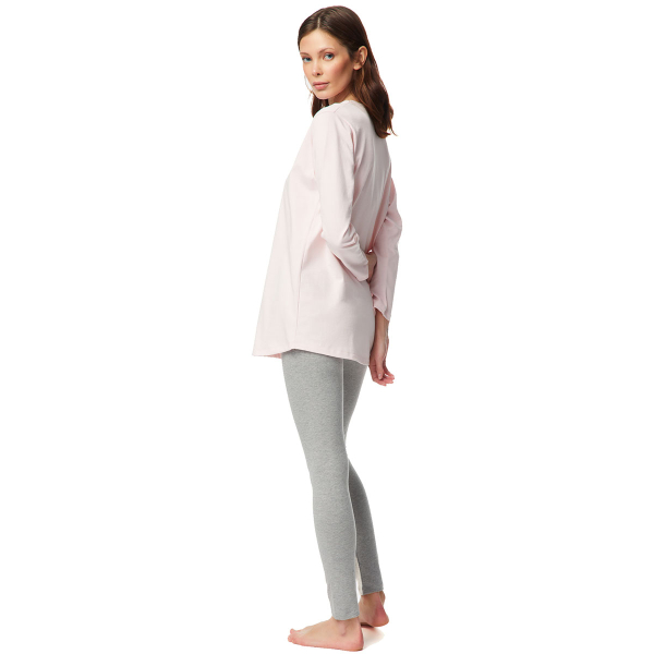 Γυναικείες πιτζάμες από την εταιρεία Minerva σε γκρι και ροζ χρώμα. Πρόκειται για μακρυμάνικη μπλούζα με στρογγυλή λαιμόκοψη και μοντέρνο σχέδιο. Το σετ ολοκληρώνεται από γκρι κολάν σε μαύρο χρώμα. Είναι κατασκευασμένες από 100% βαμβακερό ύφασμα, που προσδίδει ιδιαίτερη απαλότητα, αντοχή και σωστή εφαρμογή. Είναι ιδιαίτερα ανθεκτικές και διατηρούν τη φόρμα τους. Τα χρώματα έχουν δημιουργηθεί με την μέθοδο της νηματοβαφής (μέσα στην ύφανση), με αποτέλεσμα να παραμένουν αναλλοίωτα στην χρήση και τις πλύσεις. Τα προϊόντα Minerva διαθέτουν τα διεθνή πιστοποιητικά ποιότητας και ασφάλειας ISO 9001:2000 , ISO 9002, Oeko-Tex Standard 100, Eco Textile Label. Σε όλα τα στάδια παραγωγής έχουν χρησιμοποιηθεί υποαλλεργικά υλικά χωρίς επιβλαβείς ουσίες προς την υγεία. Αποτελούν προϊόντα ελληνικής ραφής με την εγγύηση ποιότητας και αξιοπιστίας της εταιρείας Minerva.