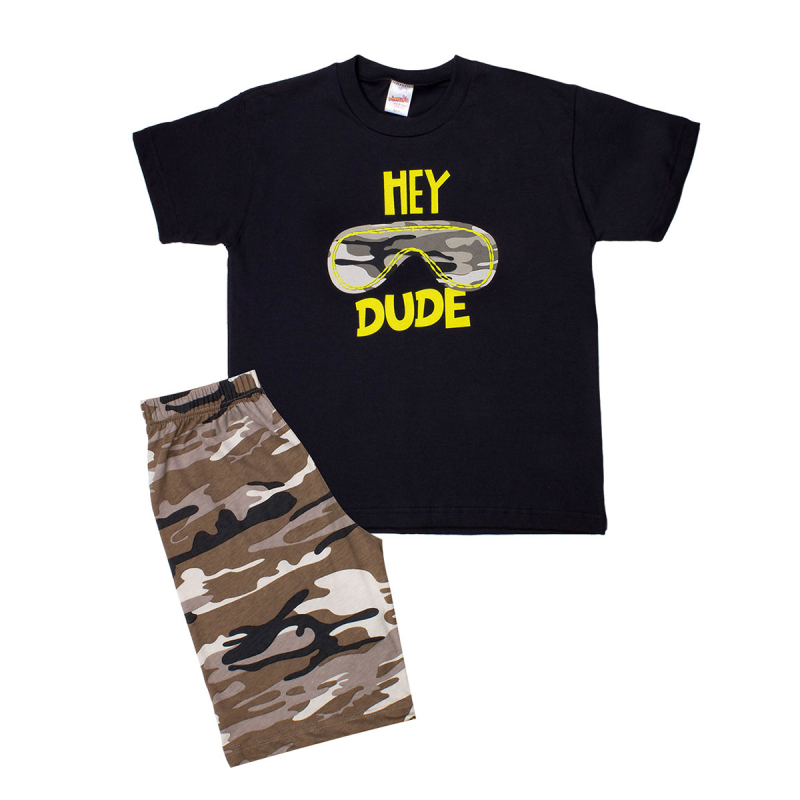 Παιδικές πιτζάμες από τη συλλογή Minervakia της εταιρείας Minerva. Πρόκειται για σετ από κοντομάνικη μπλούζα με σορτσάκι. Έχουν ανθρακί και καφέ χρώμα με μοντέρνα παράσταση και είναι ιδανικές για αγόρια. Είναι κατασκευασμένες από 100% βαμβακερό ύφασμα πεννιέ, που προσδίδει ιδιαίτερη απαλότητα, αντοχή και σωστή εφαρμογή. Είναι ιδιαίτερα ανθεκτικές και διατηρούν τη φόρμα τους. Τα χρώματα έχουν δημιουργηθεί με την μέθοδο της νηματοβαφής (μέσα στην ύφανση), με αποτέλεσμα να παραμένουν αναλλοίωτα στην χρήση και τις πλύσεις. Σε όλα τα στάδια παραγωγής έχουν χρησιμοποιηθεί υποαλλεργικά υλικά χωρίς επιβλαβείς ουσίες προς την υγεία. Διαθέτουν τα διεθνή πιστοποιητικά ποιότητας και ασφάλειας ISO 9001:2000 , ISO 9002, Oeko-Tex Standard 100, Eco Textile Label. Αποτελούν προϊόντα ελληνικής ραφής με την εγγύηση ποιότητας και αξιοπιστίας της εταιρείας Minerva. Μεγεθολόγιο ανάλογα με ηλικία και ύψος παιδιού: Νο1 (1-2 ετών, 78-90cm), Νο2 (2-3 ετών, 90-98cm), No3 (3-4 ετών, 98-104cm), No4 (4-6 ετών, 104-116cm), No6 (6-8 ετών, 116-128cm), No8 (8-10 ετών, 128-140cm), No10 (10-12 ετών, 140-152cm), No12 (12-14 ετών, 152-164cm για αγόρι, 152-158cm για κορίτσι), No14 (14-16 ετών, 164-172cm για αγόρι, 158-164cm για κορίτσι), No16 (16-18 ετών, 172-180cm για αγόρι, 164-170cm για κορίτσι)