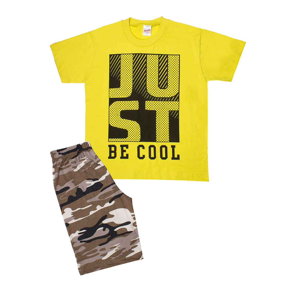 Παιδικές πιτζάμες από τη συλλογή Minervakia της εταιρείας Minerva. Πρόκειται για σετ από κοντομάνικη μπλούζα με σορτσάκι. Έχουν κίτρινο και καφέ χρώμα με μοντέρνα παράσταση και είναι ιδανικές για αγόρια. Είναι κατασκευασμένες από 100% βαμβακερό ύφασμα πεννιέ, που προσδίδει ιδιαίτερη απαλότητα, αντοχή και σωστή εφαρμογή. Είναι ιδιαίτερα ανθεκτικές και διατηρούν τη φόρμα τους. Τα χρώματα έχουν δημιουργηθεί με την μέθοδο της νηματοβαφής (μέσα στην ύφανση), με αποτέλεσμα να παραμένουν αναλλοίωτα στην χρήση και τις πλύσεις. Σε όλα τα στάδια παραγωγής έχουν χρησιμοποιηθεί υποαλλεργικά υλικά χωρίς επιβλαβείς ουσίες προς την υγεία. Διαθέτουν τα διεθνή πιστοποιητικά ποιότητας και ασφάλειας ISO 9001:2000 , ISO 9002, Oeko-Tex Standard 100, Eco Textile Label. Αποτελούν προϊόντα ελληνικής ραφής με την εγγύηση ποιότητας και αξιοπιστίας της εταιρείας Minerva. Μεγεθολόγιο ανάλογα με ηλικία και ύψος παιδιού: Νο1 (1-2 ετών, 78-90cm), Νο2 (2-3 ετών, 90-98cm), No3 (3-4 ετών, 98-104cm), No4 (4-6 ετών, 104-116cm), No6 (6-8 ετών, 116-128cm), No8 (8-10 ετών, 128-140cm), No10 (10-12 ετών, 140-152cm), No12 (12-14 ετών, 152-164cm για αγόρι, 152-158cm για κορίτσι), No14 (14-16 ετών, 164-172cm για αγόρι, 158-164cm για κορίτσι), No16 (16-18 ετών, 172-180cm για αγόρι, 164-170cm για κορίτσι)