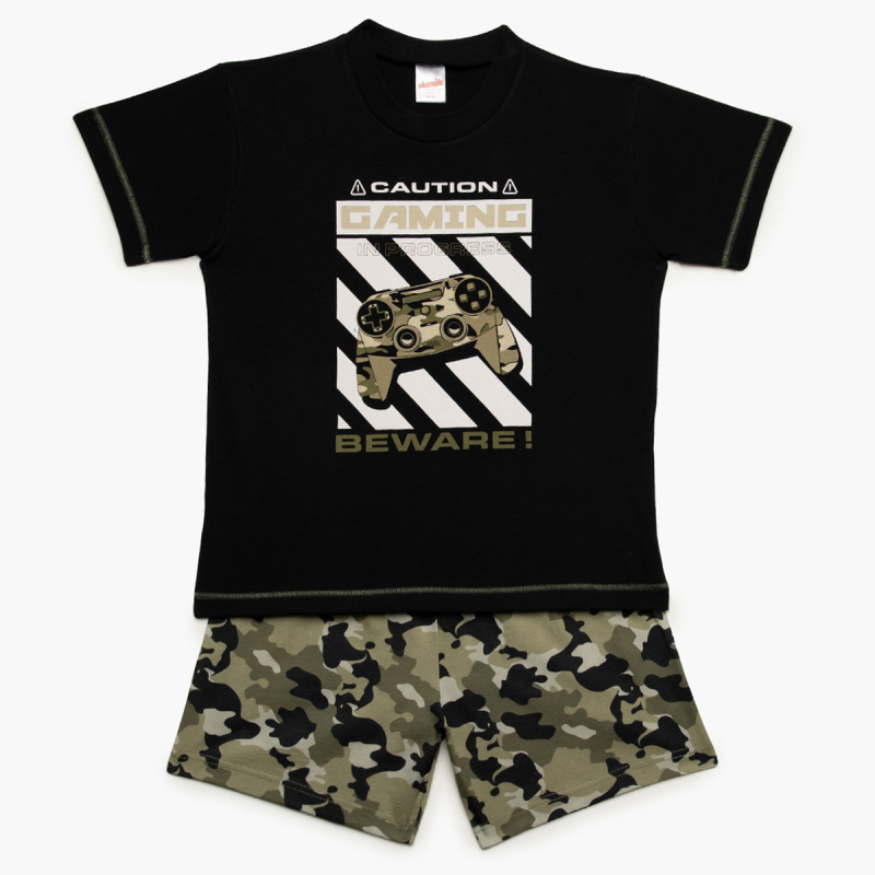 Παιδικές πιτζάμες (κωδ.: 61951-045) από τη συλλογή Minervakia της εταιρείας Minerva. Πρόκειται για σετ από κοντομάνικη μπλούζα με σορτσάκι. Έχουν μπλε και γκρι μελανζέ απόχρωση και φέρουν μοντέρνο σχέδιο με μοτίβο παραλλαγής. Είναι κατασκευασμένες από 100% βαμβακερό ύφασμα, που προσδίδει ιδιαίτερη απαλότητα, αντοχή και σωστή εφαρμογή. Είναι ιδιαίτερα ανθεκτικές και διατηρούν τη φόρμα τους. Τα χρώματα έχουν δημιουργηθεί με την μέθοδο της νηματοβαφής (μέσα στην ύφανση), με αποτέλεσμα να παραμένουν αναλλοίωτα στην χρήση και τις πλύσεις. Σε όλα τα στάδια παραγωγής έχουν χρησιμοποιηθεί υποαλλεργικά υλικά χωρίς επιβλαβείς ουσίες προς την υγεία. Διαθέτουν τα διεθνή πιστοποιητικά ποιότητας και ασφάλειας ISO 9001:2000 , ISO 9002, Oeko-Tex Standard 100, Eco Textile Label. Αποτελούν προϊόντα ελληνικής ραφής με την εγγύηση ποιότητας και αξιοπιστίας της εταιρείας Minerva. Μεγεθολόγιο ανάλογα με ηλικία και ύψος παιδιού: Νο1 (1-2 ετών, 78-90cm), Νο2 (2-3 ετών, 90-98cm), No3 (3-4 ετών, 98-104cm), No4 (4-6 ετών, 104-116cm), No6 (6-8 ετών, 116-128cm), No8 (8-10 ετών, 128-140cm), No10 (10-12 ετών, 140-152cm), No12 (12-14 ετών, 152-164cm για αγόρι, 152-158cm για κορίτσι), No14 (14-16 ετών, 164-172cm για αγόρι, 158-164cm για κορίτσι), No16 (16-18 ετών, 172-180cm για αγόρι, 164-170cm για κορίτσι)